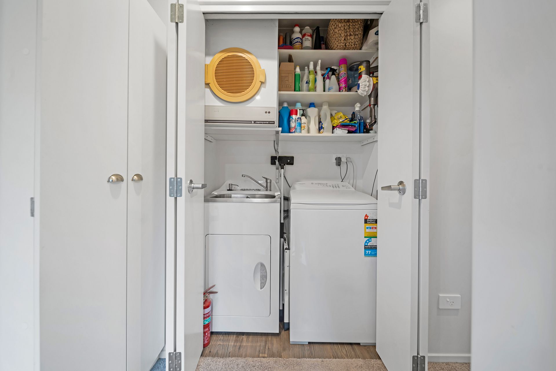 This home comes partially furnished with: Fridge, Washing Machine, Table & chairs, barstools, Extra Storage Cupboard and Bookshelves.