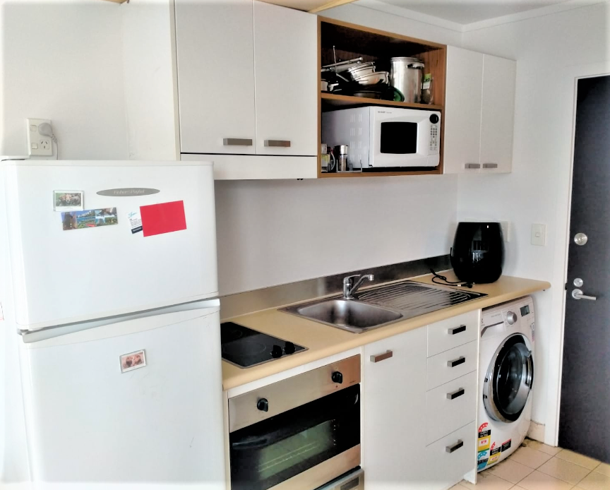 The modern kitchen comes with fridge/freezer, dishwasher, microwave, oven, washing machine, dryer and all kitchenware