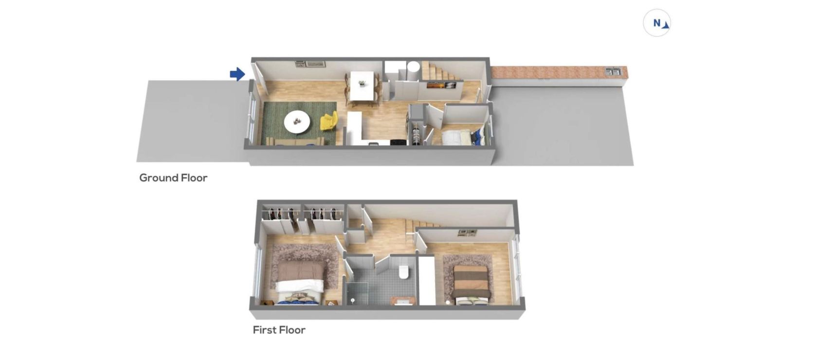 - Three bedrooms: two spacious double bedrooms upstairs and a single room on the ground floor.
