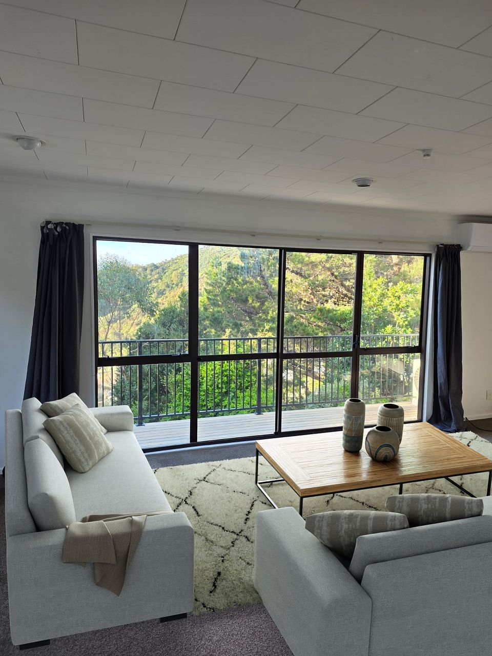 - Bright, spacious living area with recently installed heat pump for year-round comfort