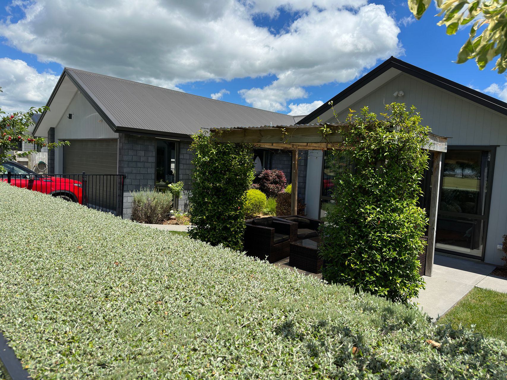 4 double Bedroom Home ,built 2016 . Two heat pumps . 2 bathrooms with an Additional seperate toilet . Fully insulated including (all walls and garage door), double glazed . Opposite a park with a lovely garden and little vege patch.