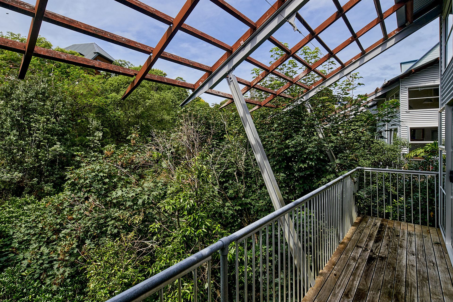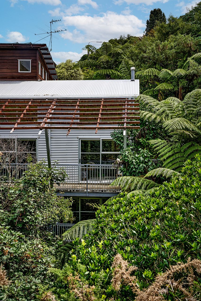The bottom level includes a master bedroom with a large walk-in-wardrobe, ensuite and small deck overlooking the stream and bush.