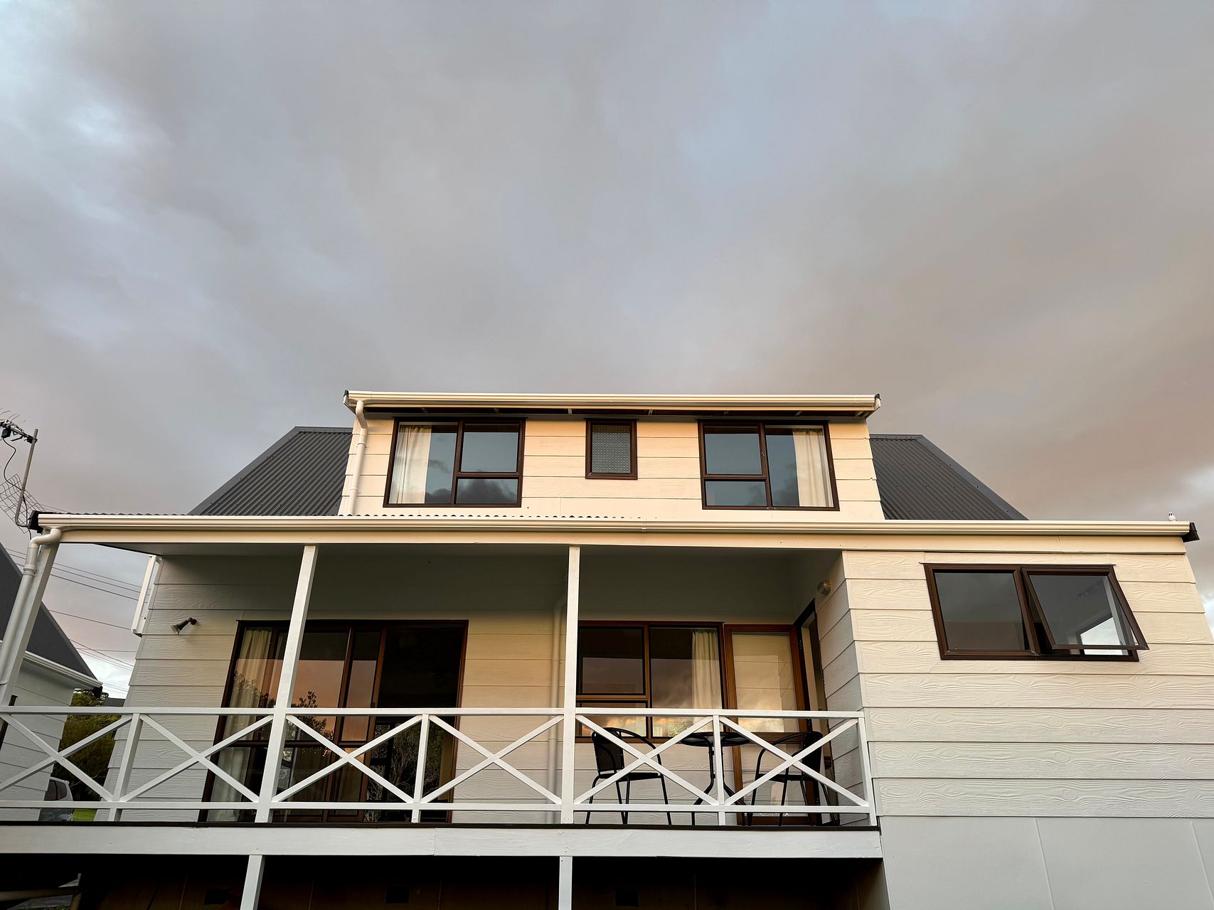 Two upstairs bedrooms with private balconies and ocean views