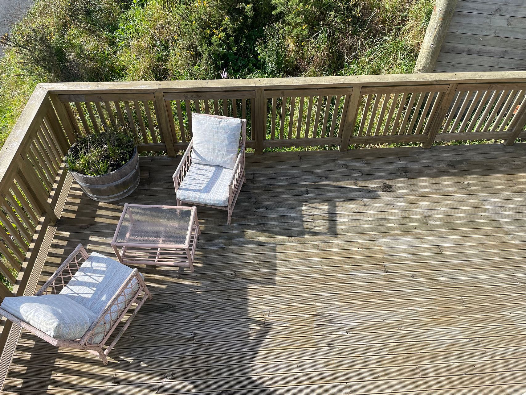 Comes with a small garden, a large deck, and a garage.