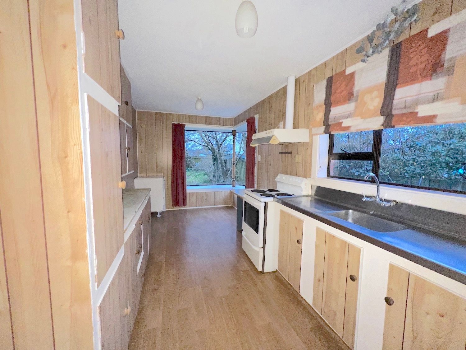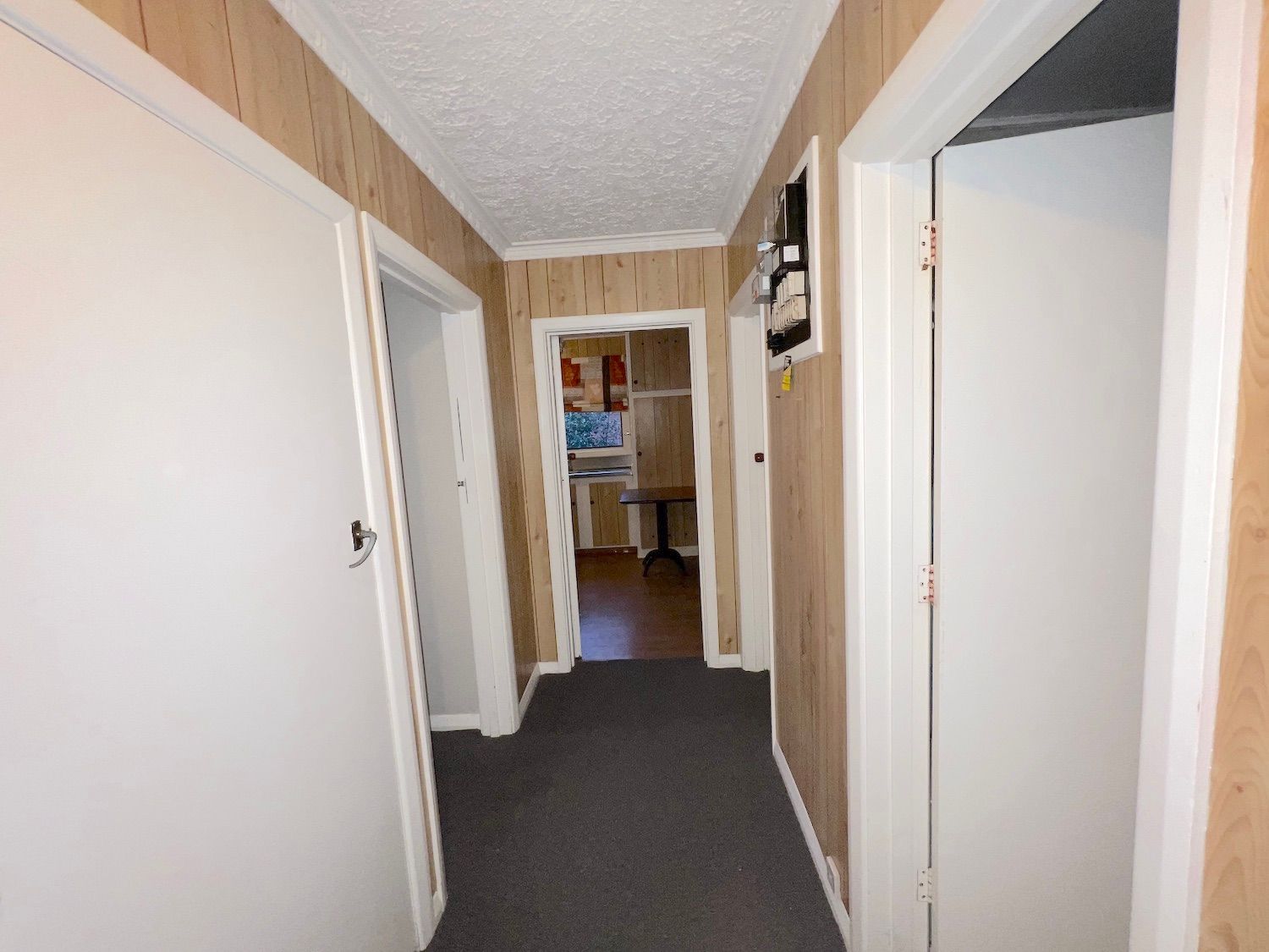 Extensive character wall veneer was put on in the hallway, kitchen, dining area, bathroom, toilet and laundry.