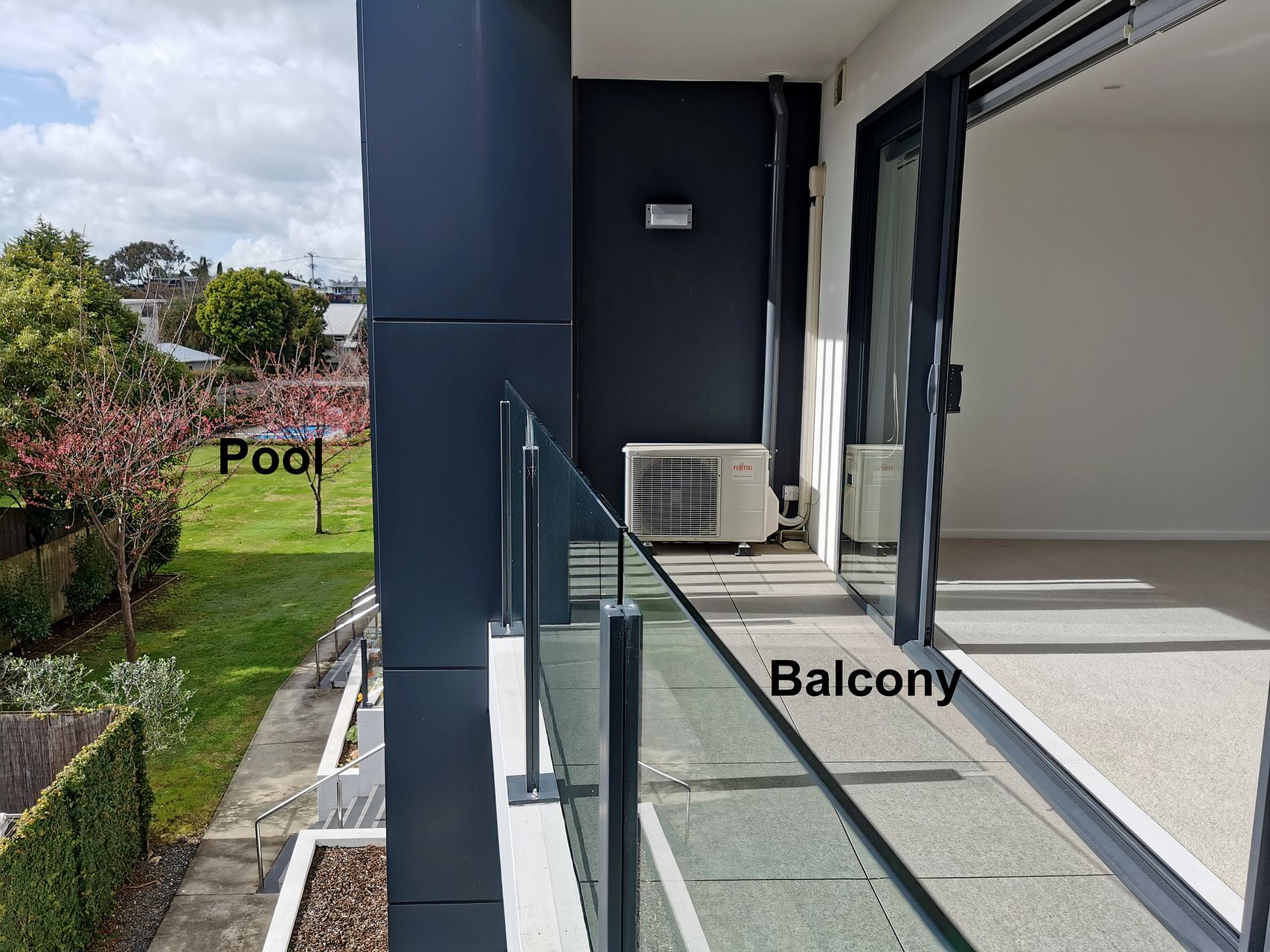 Sunny, north facing 2 bedroom apartment with pool.