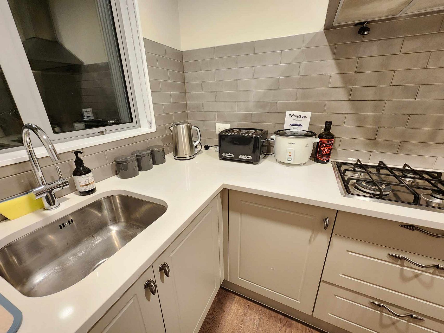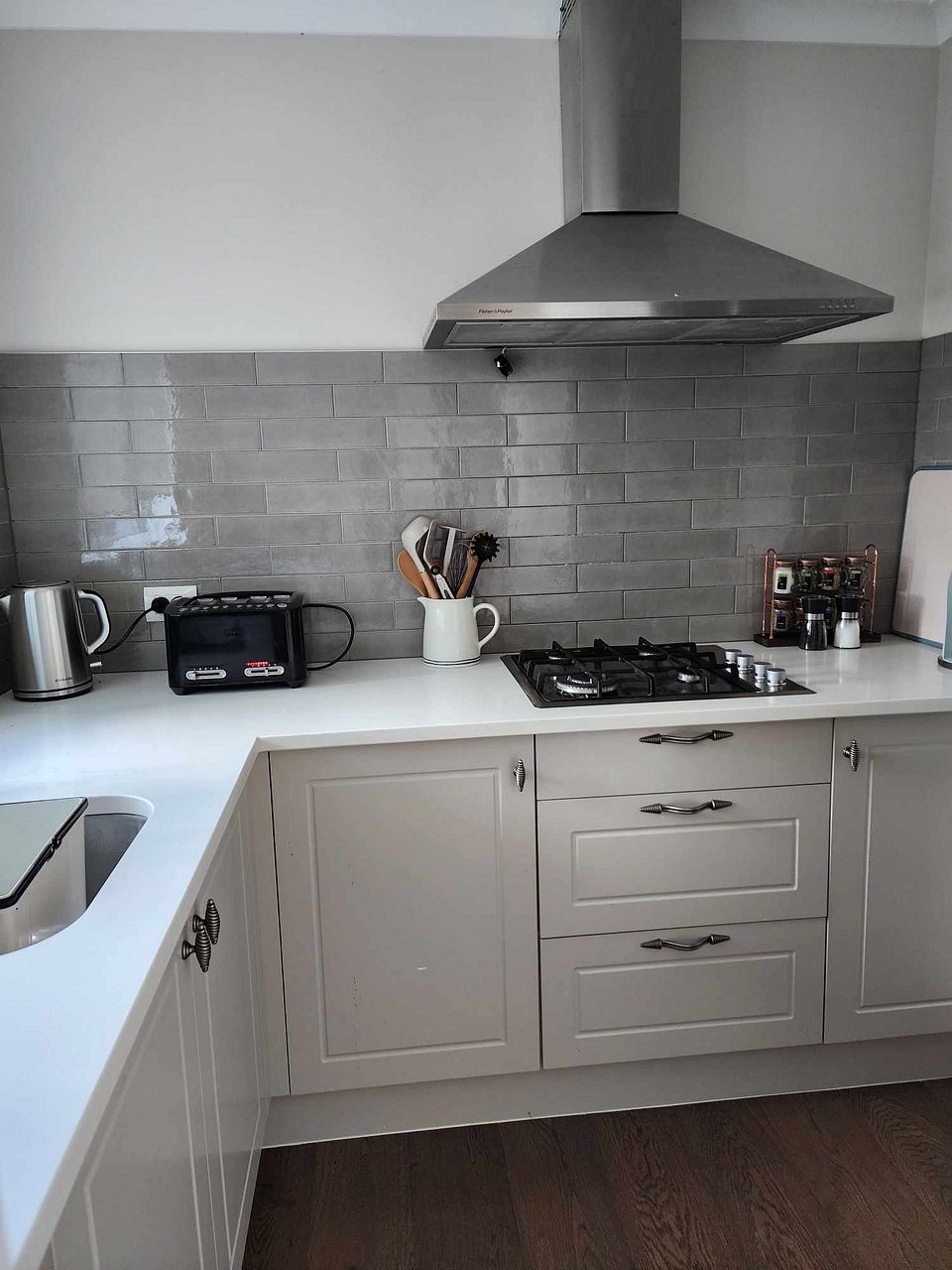 A beautiful large designer kitchen is complemented by an adjoining butlers pantry that enjoys another gas hob, sink and further storage.