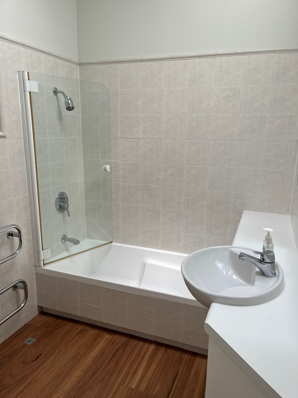 Comes with fridge/freezer, double dishdrawer, oven, gas hob, rangehood, Insinkerator, washer, dryer and tub.