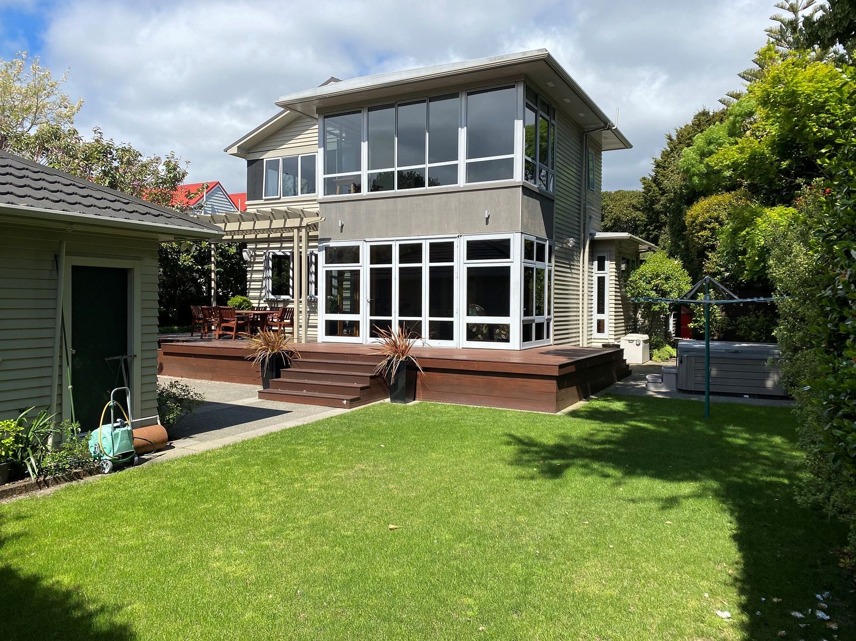 Significant section with lots of space for the children to run around, comes with its own playhouse and slide. The beautiful gardens and trees make this home private and inviting. Plenty of Tui and Kereru frequent the garden and every now and then a Morepork can be heard at night.
