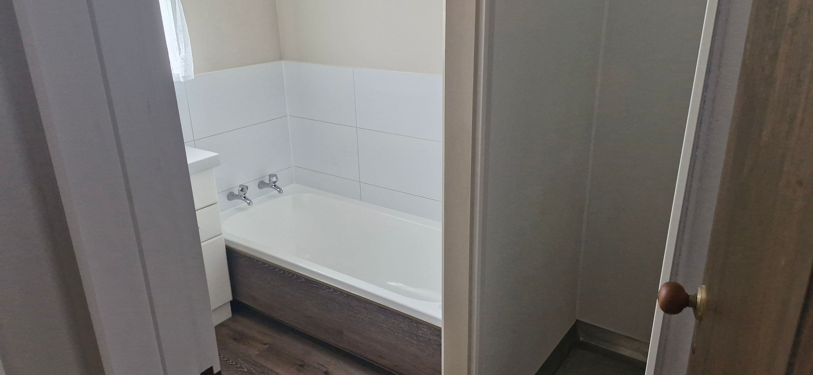 Separate Laundry with laundry tub and washing machine taps.