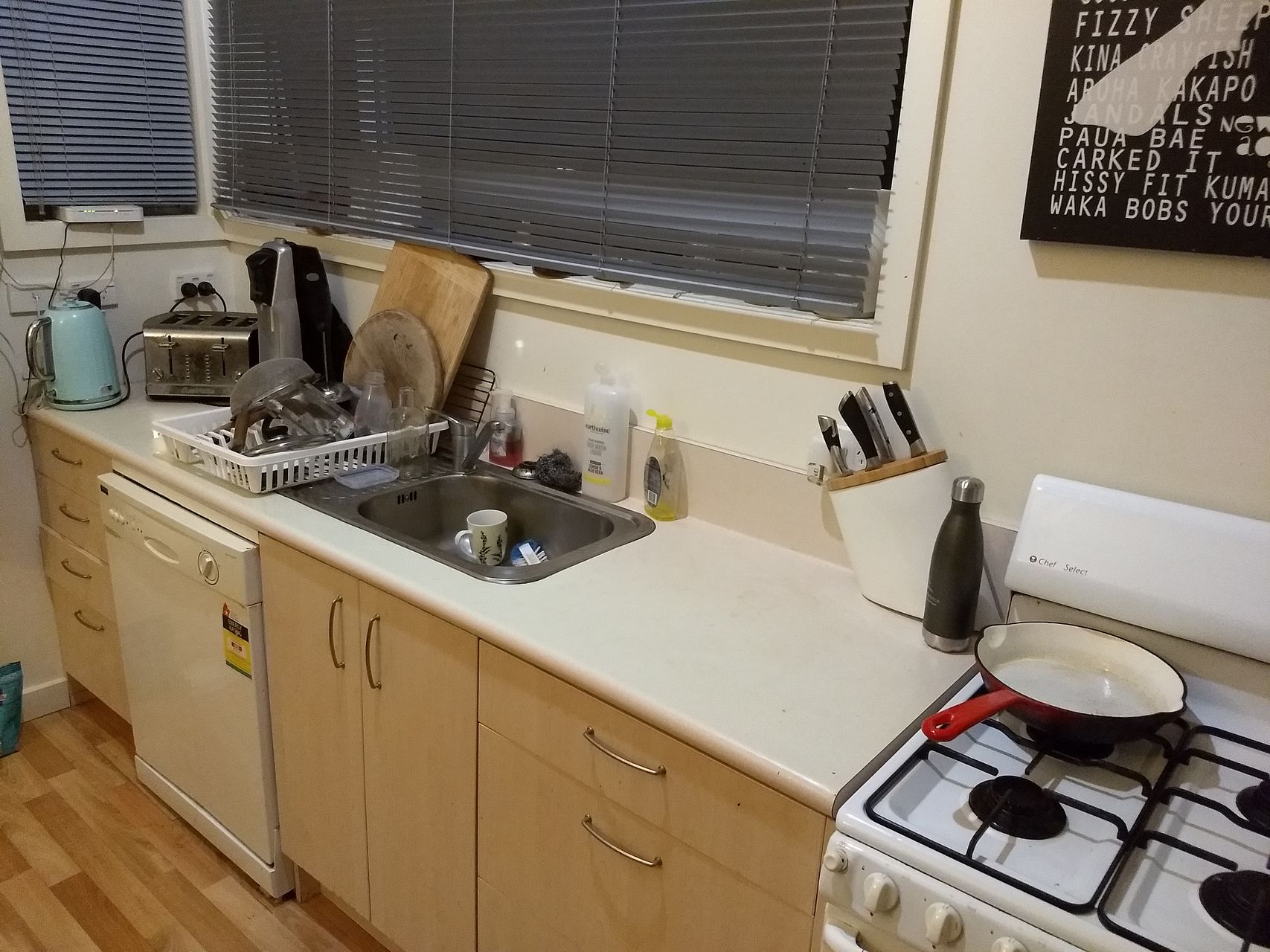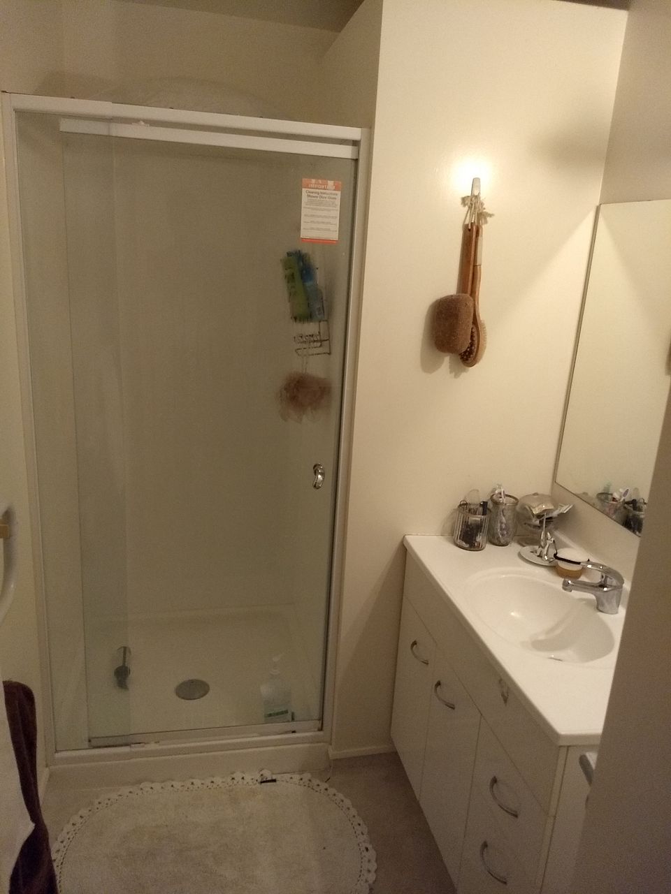 Master bedroom is a good size. Spare bedroom is L shaped, smaller and near external laundry and will have some minor maintenance done in a few weeks-months when the landlords have time, this will be negotiated with new tenants.