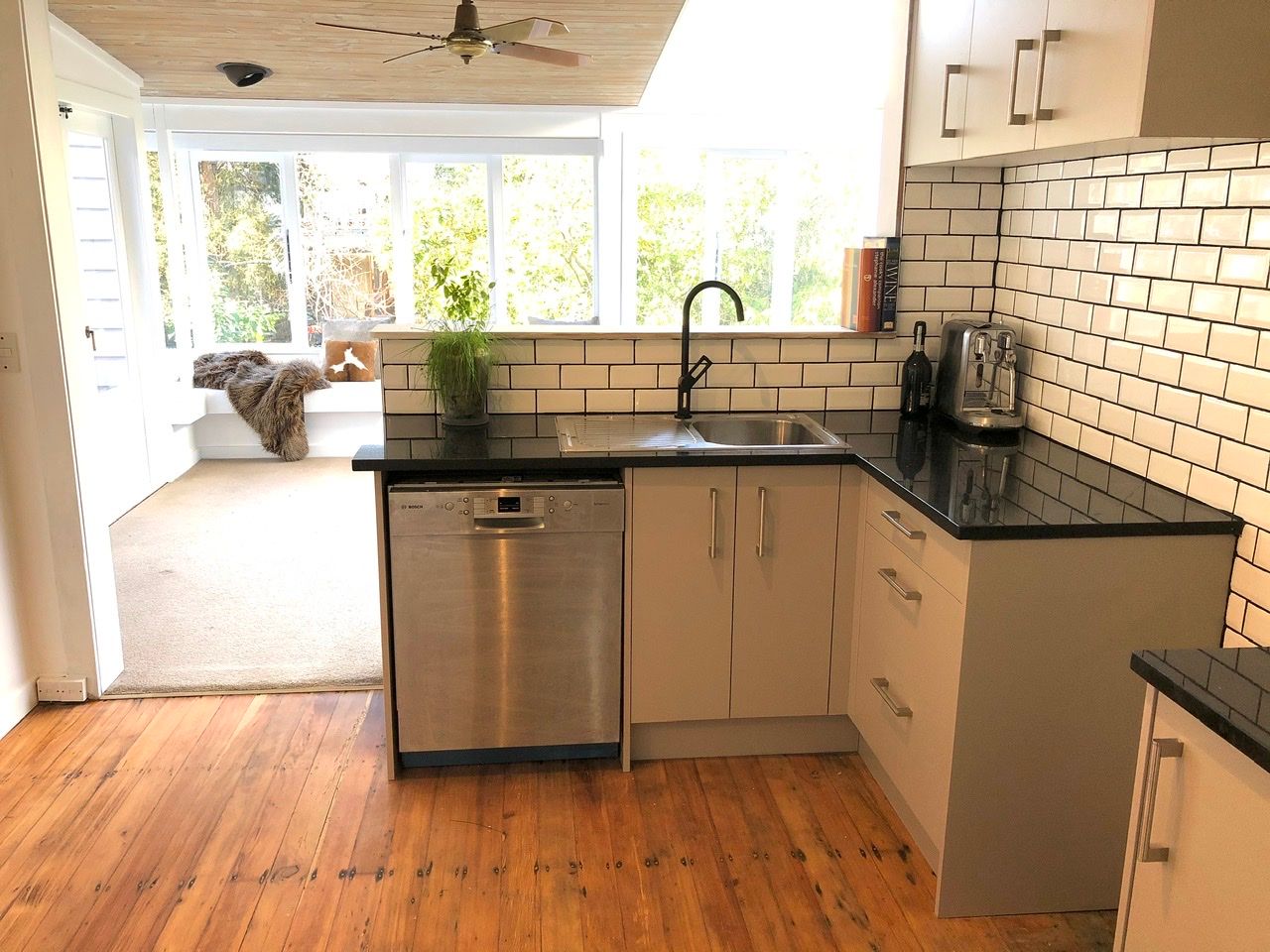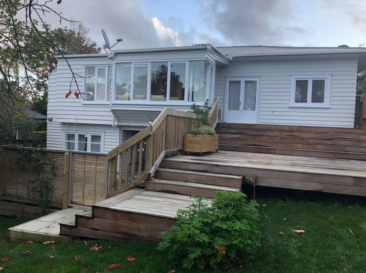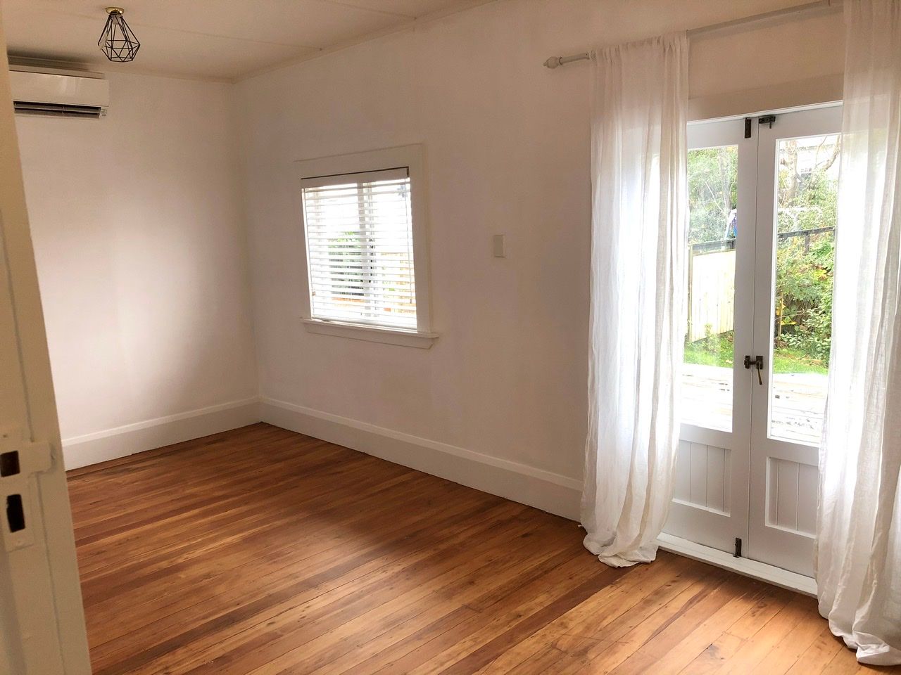 This is a recently renovated character bungalow in Ponsonby/Herne Bay. It has three large double bedrooms, a new kitchen, new bathroom (separate toilet), large living room with views out over the tree-filled backyard and across to Kelmarna Gardens and a large, recently built outdoor deck for entertaining and enjoying the sun. It is freshly painted throughout and has recently sanded and polished original wooden floors. The kitchen has a dishwasher and new stove; and there is a dryer and heat pump. The house is well insulated.