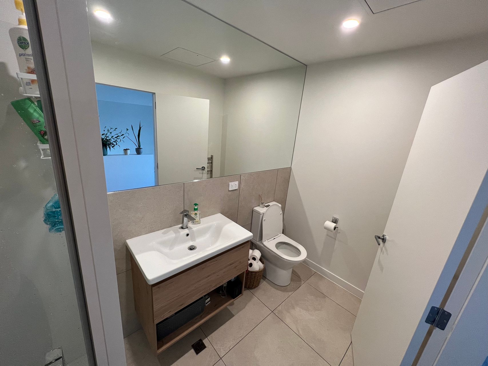 1 x modern bathroom with large mirror