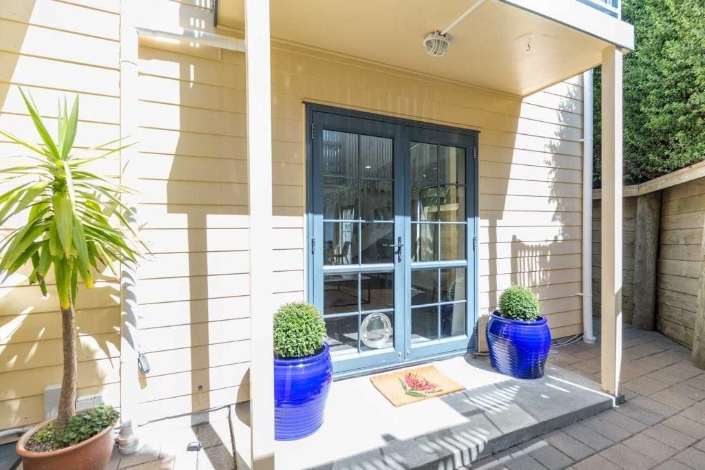 There is room outside the front door for a little courtyard and morning coffee.