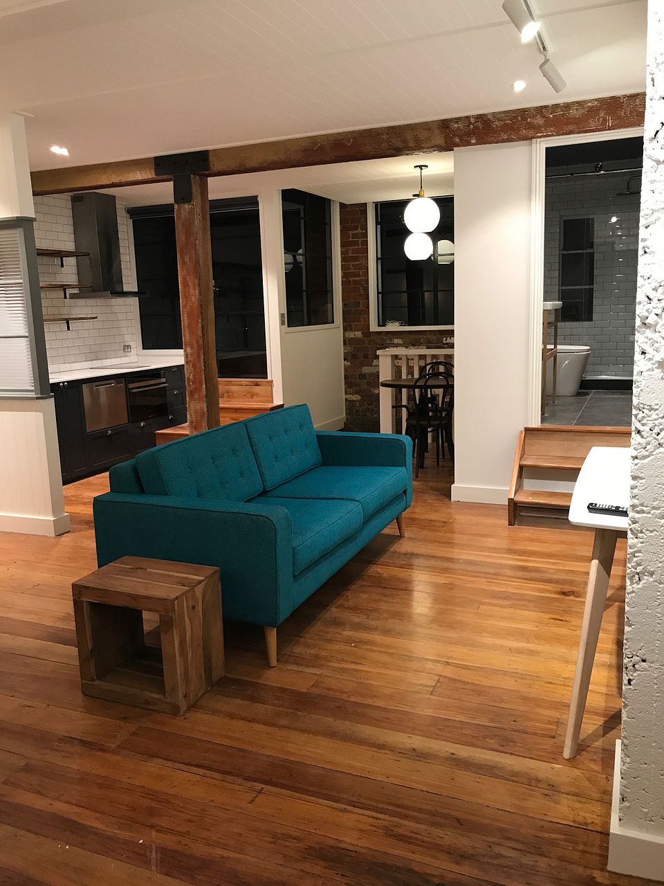 All of the character preserved by keeping the exposed brick, original steel windows, restoration of wooden floorboards, exposing original beams while being insulated & sound proofed, with heatpump to keep you nice and warm in winter.