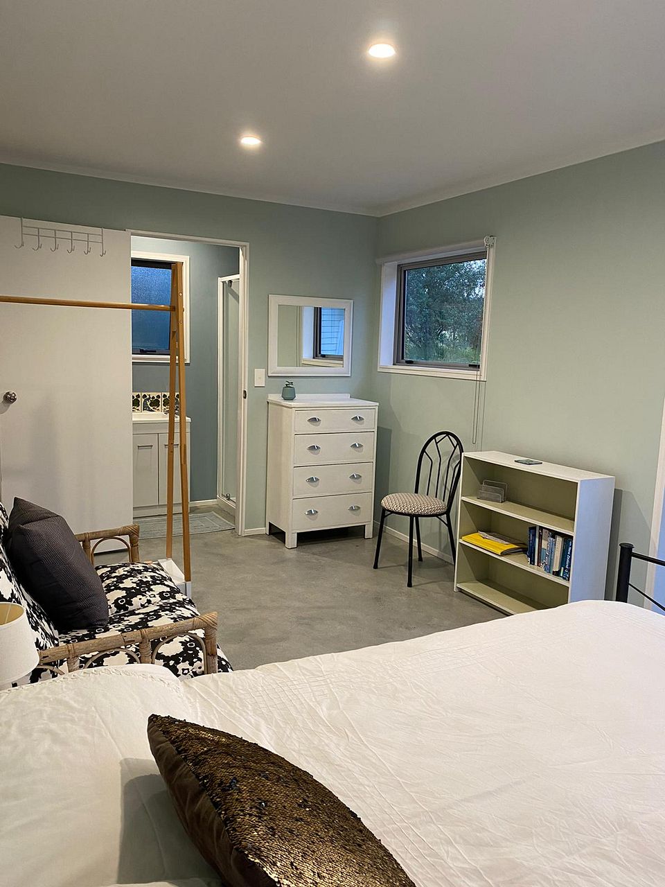 Available for rent now: our peaceful, self-contained studio. It is fully furnished, full kitchen with breakfast bar and a private bathroom in idyllic rural surroundings 9km from Kerikeri town.