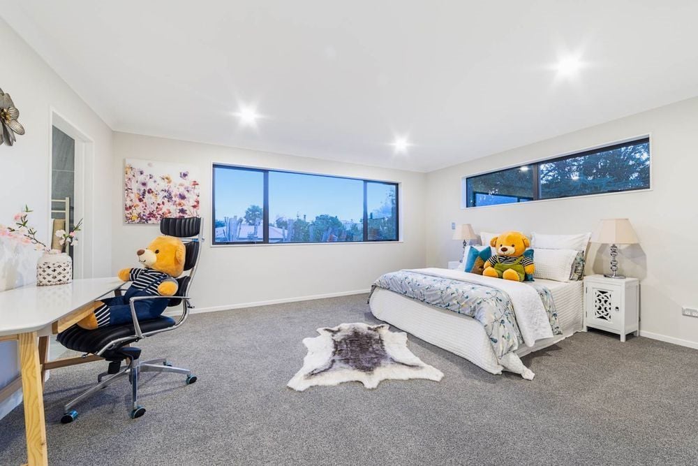This nearly new family home offers five good size bedrooms, four bathrooms plus an extra toilet, multiple living areas plus a double internal garage. The ground floor has one bedroom with an ensuite, the open plan living area flows to the deck, a modern designed kitchen with a scullery, a large family room plus an additional toilet. On the first floor, there are four bedrooms (two of them with walk in wardrobe), three bathrooms including two ensuites. Fully fenced, double glazed windows, two heat pumps installed.