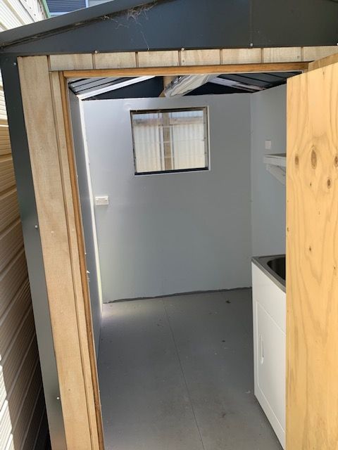 To create more space and storage in the house, a laundry shed has been added with ample room for any type of washing machine, dryer and that spare fridge or freezer.