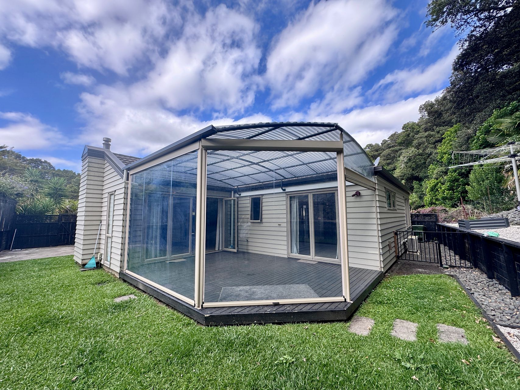 Fully fenced backyard , low maintenance garden , a canvas around deck which can be closed off . It’s the best chill out area for family and friends after a full day of work and school.