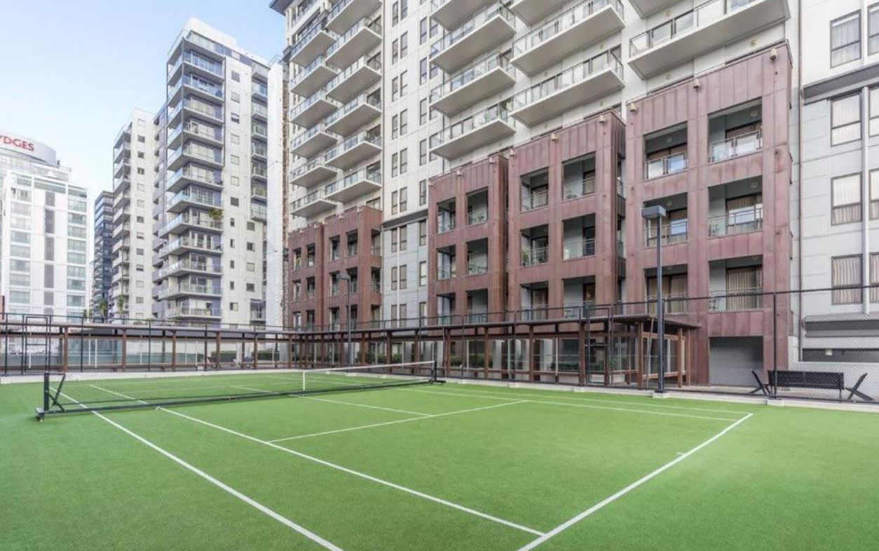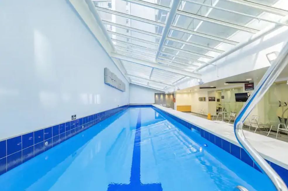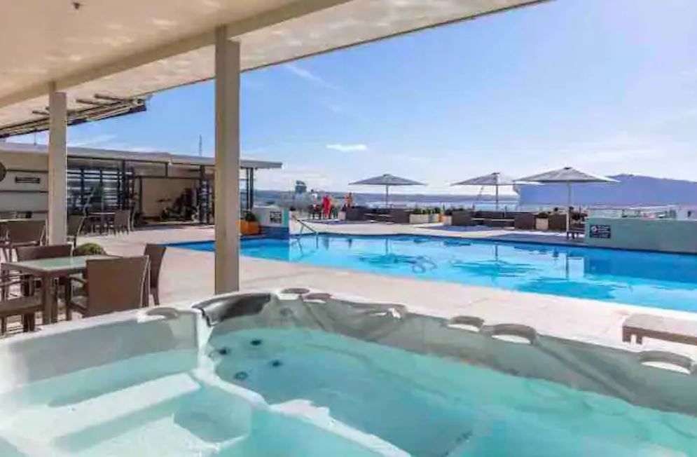 Living in this hotel complex comes with many added perks other city apartments don't have - air conditioning, bathtub, and free access to the wonderful resort-style facilities onsite: Indoor heated lap pool, sauna, tennis court, two gyms, rooftop swimming pool and spa with outdoor furniture overlooking the harbor, onsite restaurant, and security!