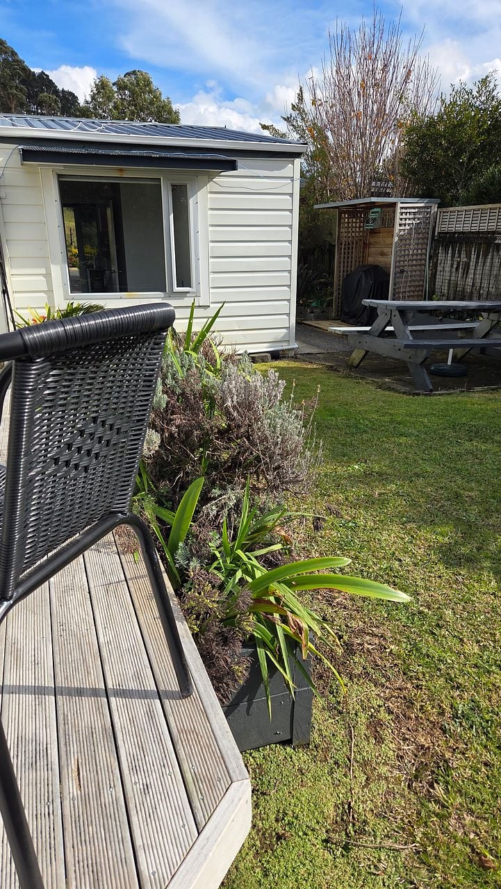 Semi furnished, small 1 bedroom flat in idyllic rural setting. 6 kms from Waitakere township, the lovely Bethells Beach and Swanson train station. Storage available. Private fenced backyard and courtyard. Access to lake for swimming.