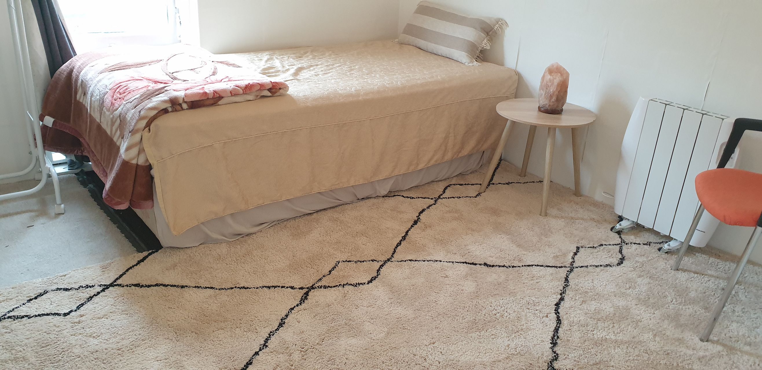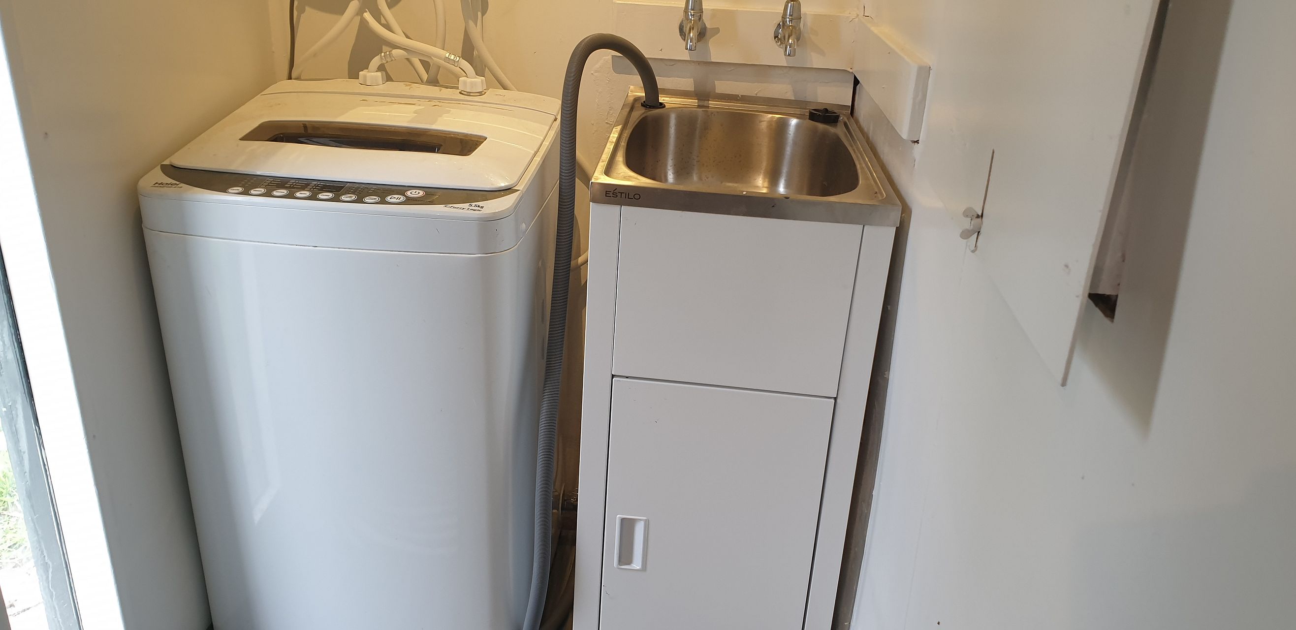 it has 2 single beds. fridge. .fridge .stove..lounge suite ..washing machine