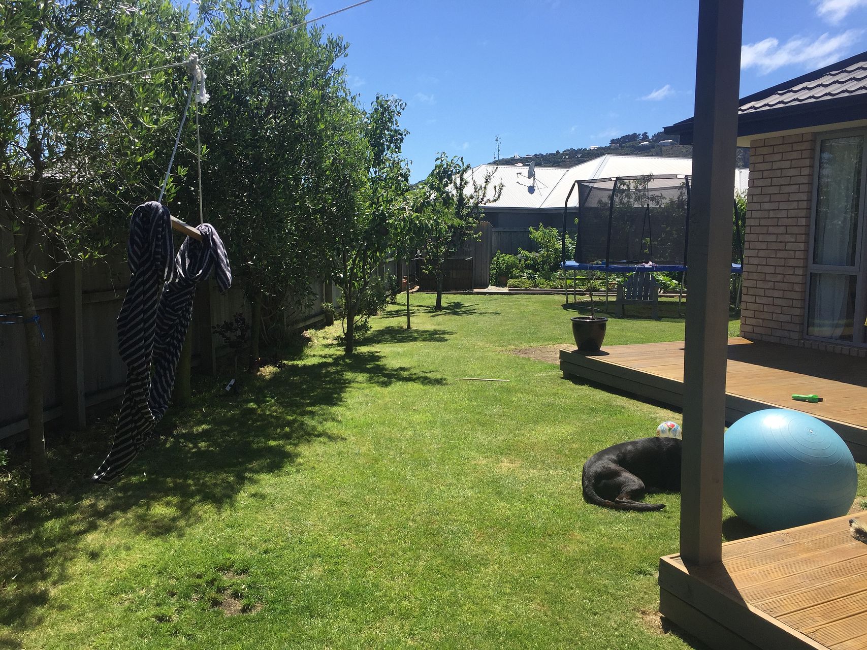 Deck with sun shade.