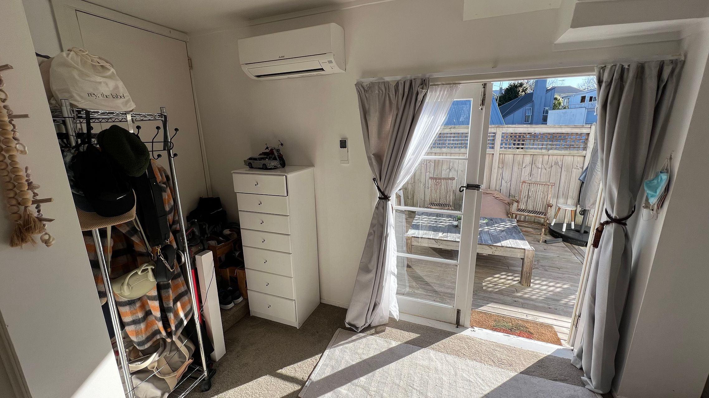 This is a One Bedroom Studio with private entrance and a spacious decking and back yard.