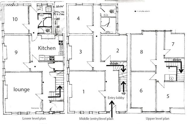 - 10 good sized bedrooms across 3 floors. A few extra large. Each has built in wardrobe.