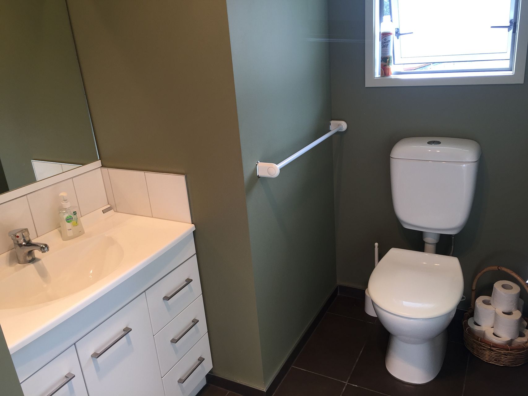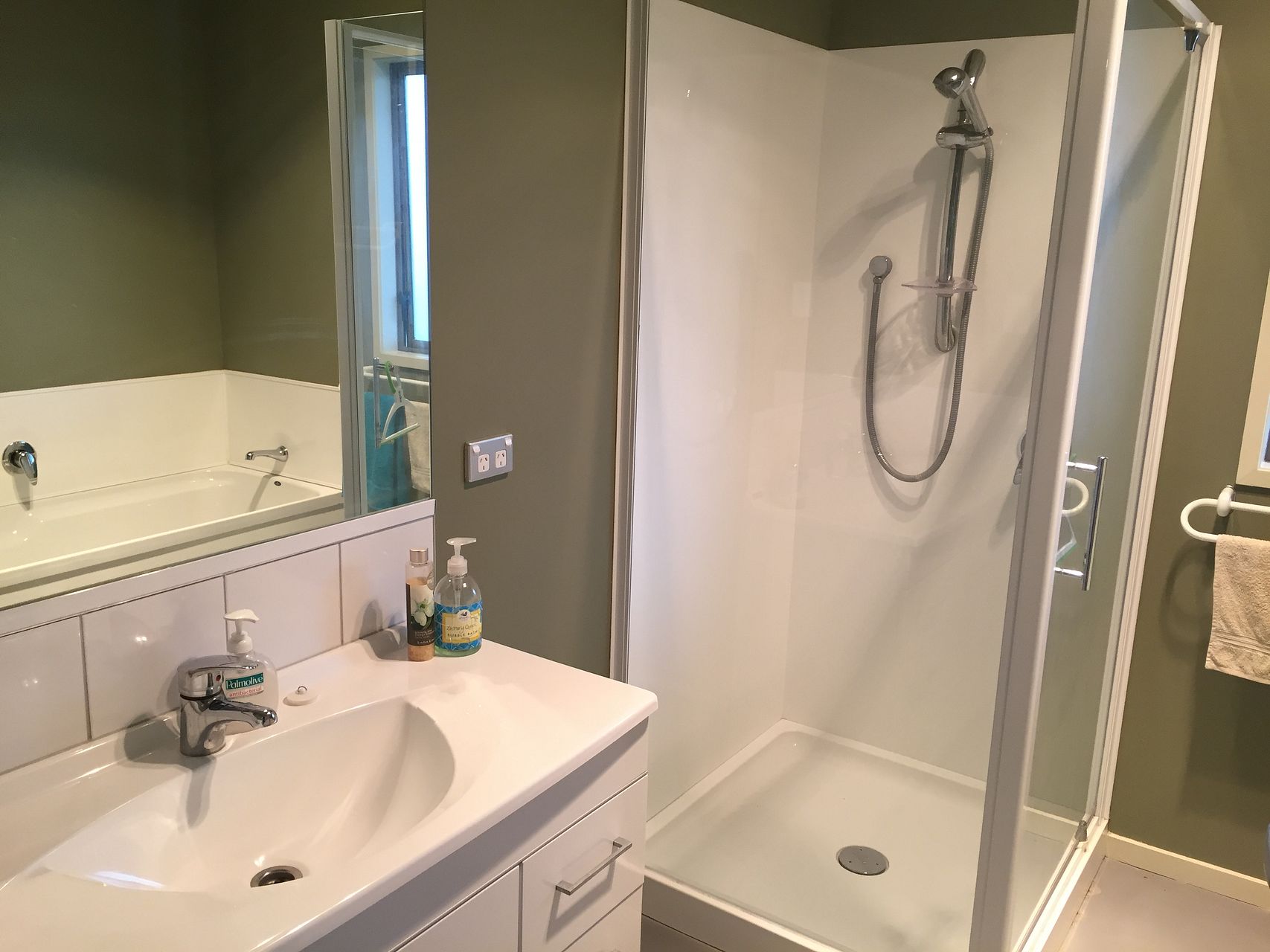 3 bedrooms with queen beds, one bathroom upstairs and one downstairs with a bath and separate toilet for when you come back from the beach with sandy feet.