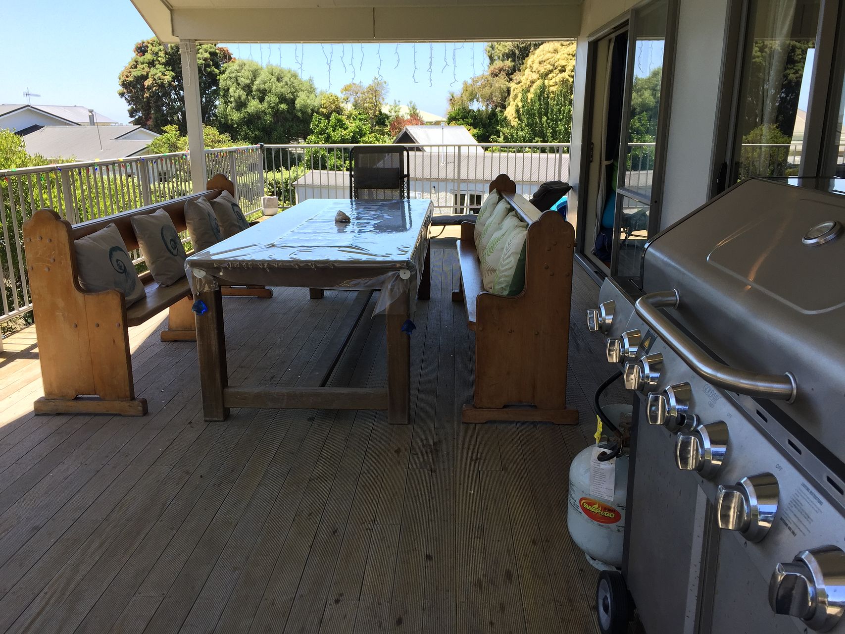 Sunny stunning Kairakau beach has a lot to offer with a river to kayak up, cliffs to walk up and large volcanic rocks to paddle out to sea and visit. This house is 2 stories with most of the living all on the upper level. It is set off the road on a back section with amazing views of the cliffs which can be enjoyed from the open plan living area or large 90m^ deck and alfresco area. The house is fully fenced it is suitable for pets on a case-by-case basis.