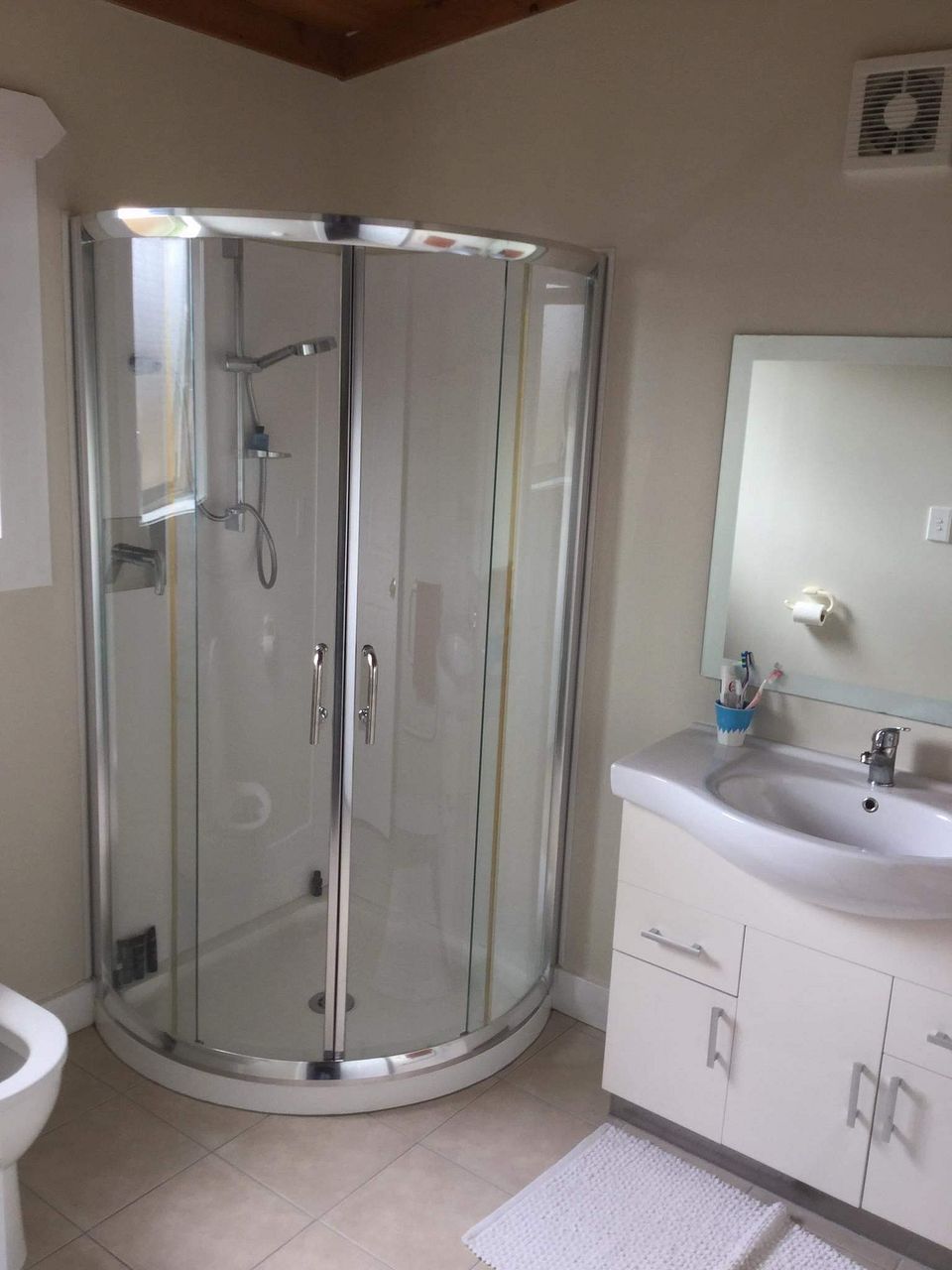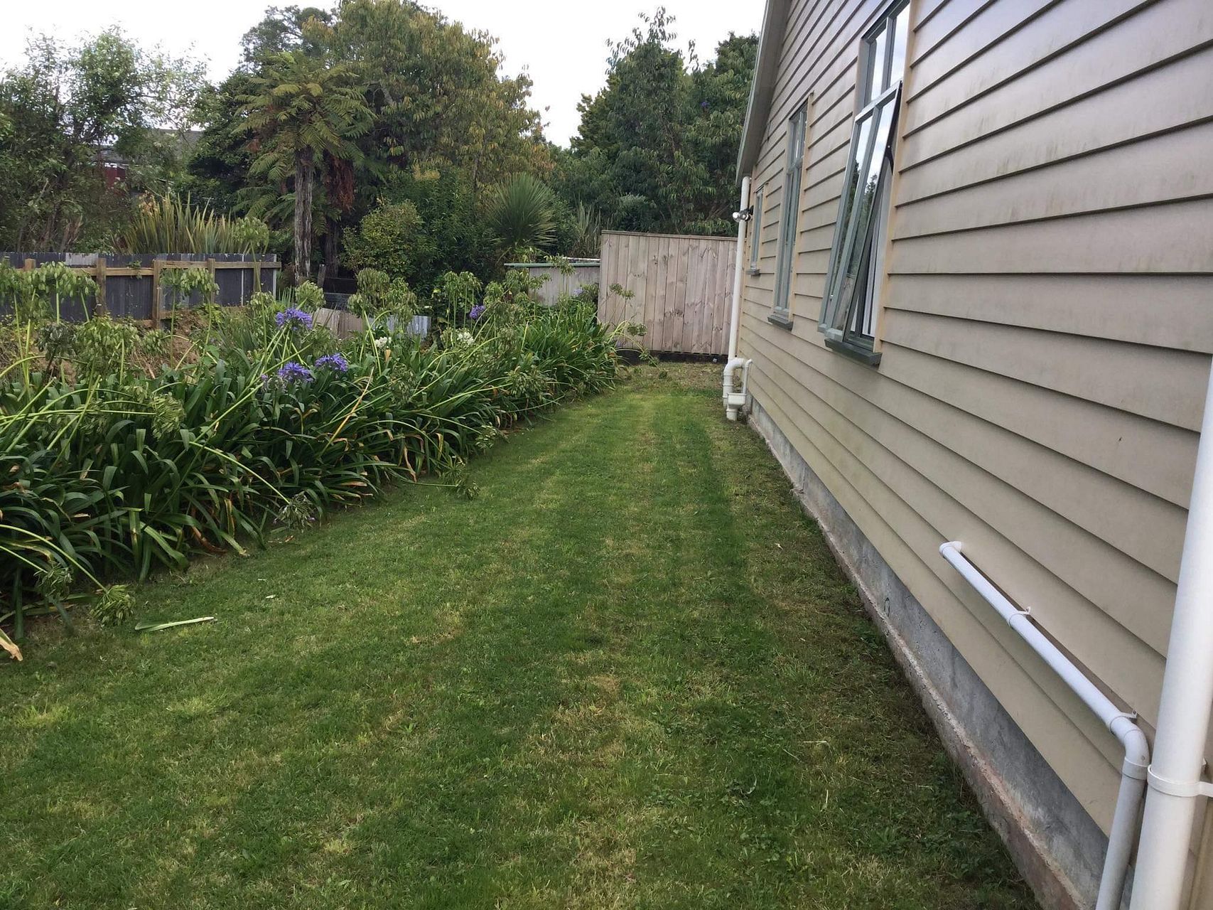 This house is about 10 years old but has been our holiday house for most of that time hence is like brand new. Open plan living leading to the covered courtyard. It has high wooden ceilings which are stunning. 2 bedrooms both have large ensuites, the master also has a walk in wardobe. The kitchen whilst looks small has heaps of storage and is very functionable. There's a separate laundry. The property has a very large outside covered deck with some grass area and parking for at least 2 cars. As the property is on a back section it is very private, safe and quiet. Walking distance to town.