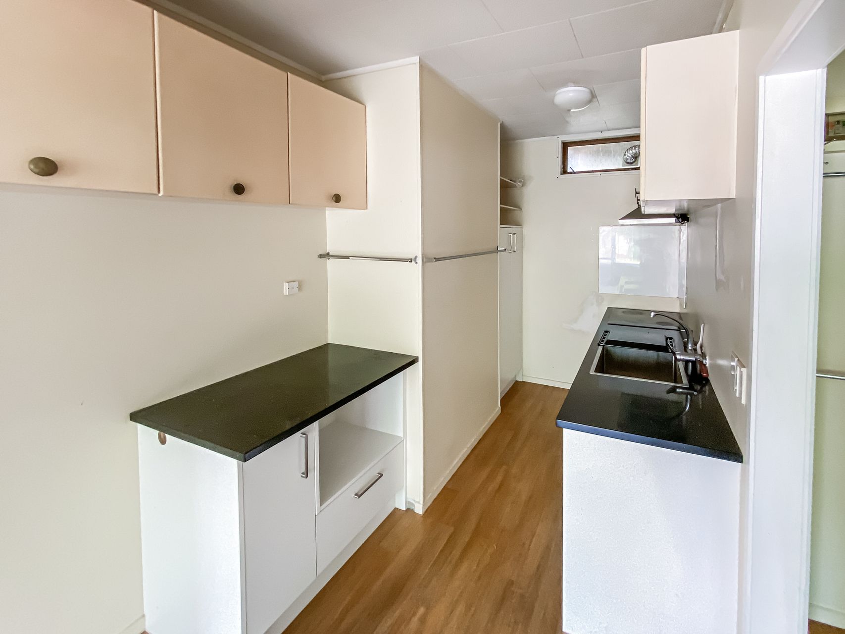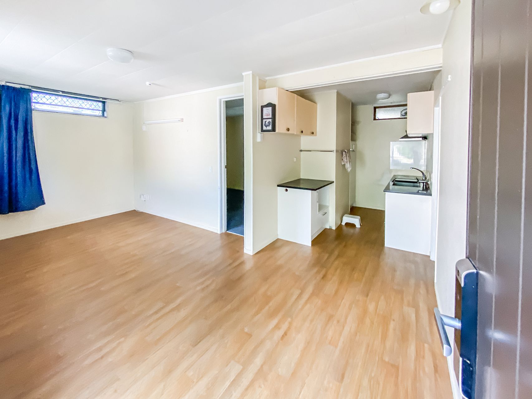This cozy and freshly renovated two-bedroom downstairs unit offers a flexible living space with a bonus rumpus room, perfect as a third bedroom or a study. The open-plan kitchenette and living room create a warm, inviting atmosphere.