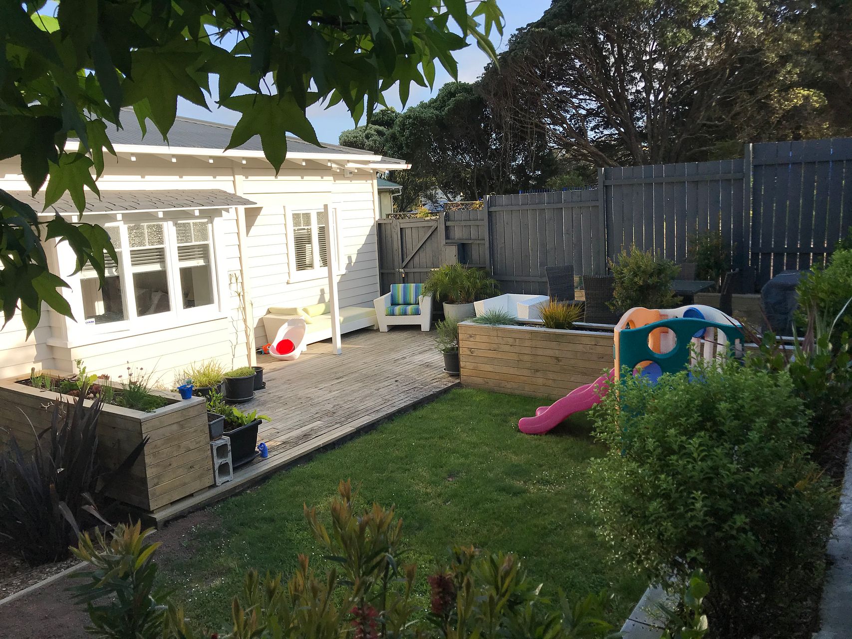 - Low maintenance garden with lots of space for play and entertaining