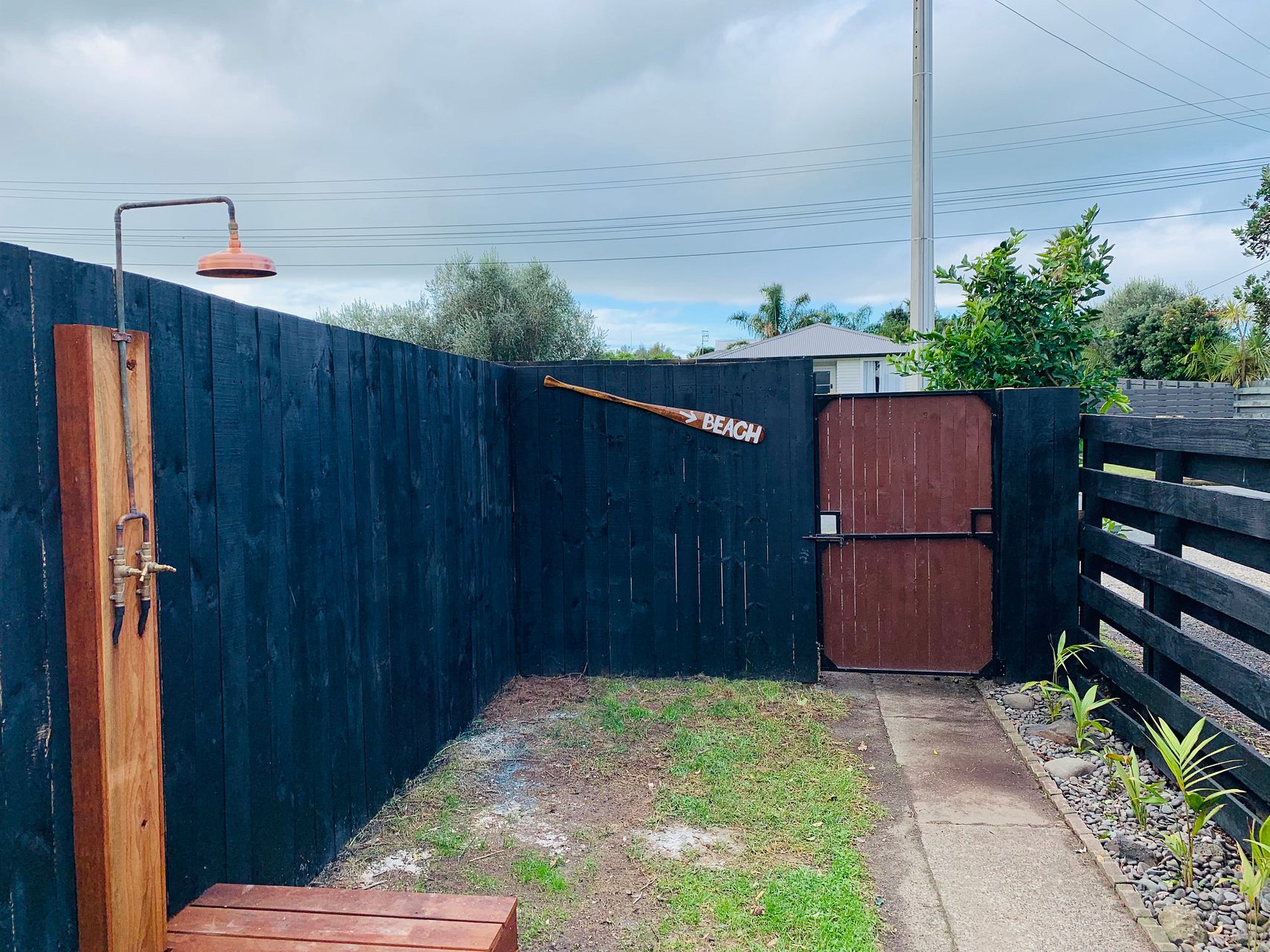 Includes an outdoor shower to rinse off after those beach excursions and off street parking (no garage) a huge garden shed for storage. Small pet considered.