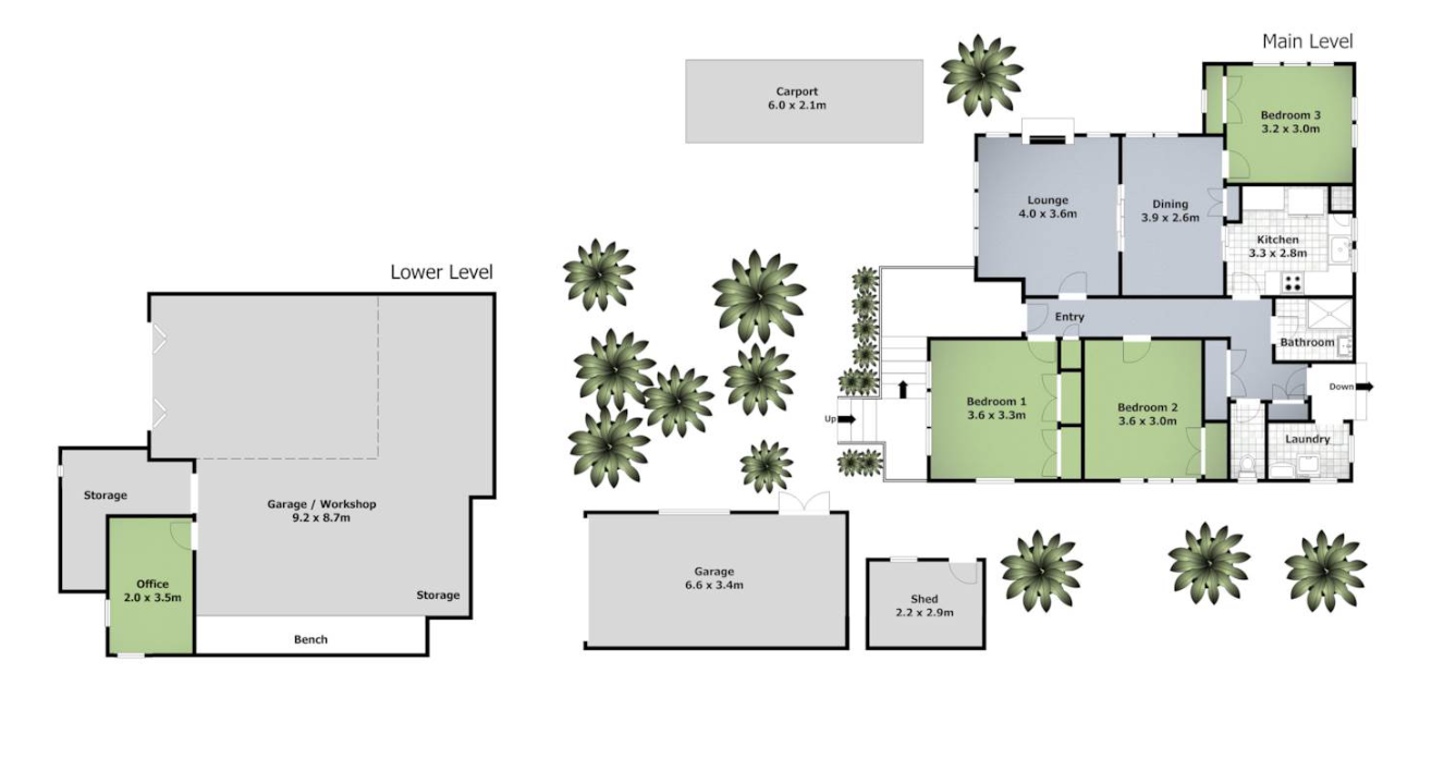 Includes a garden shed for additional storage.