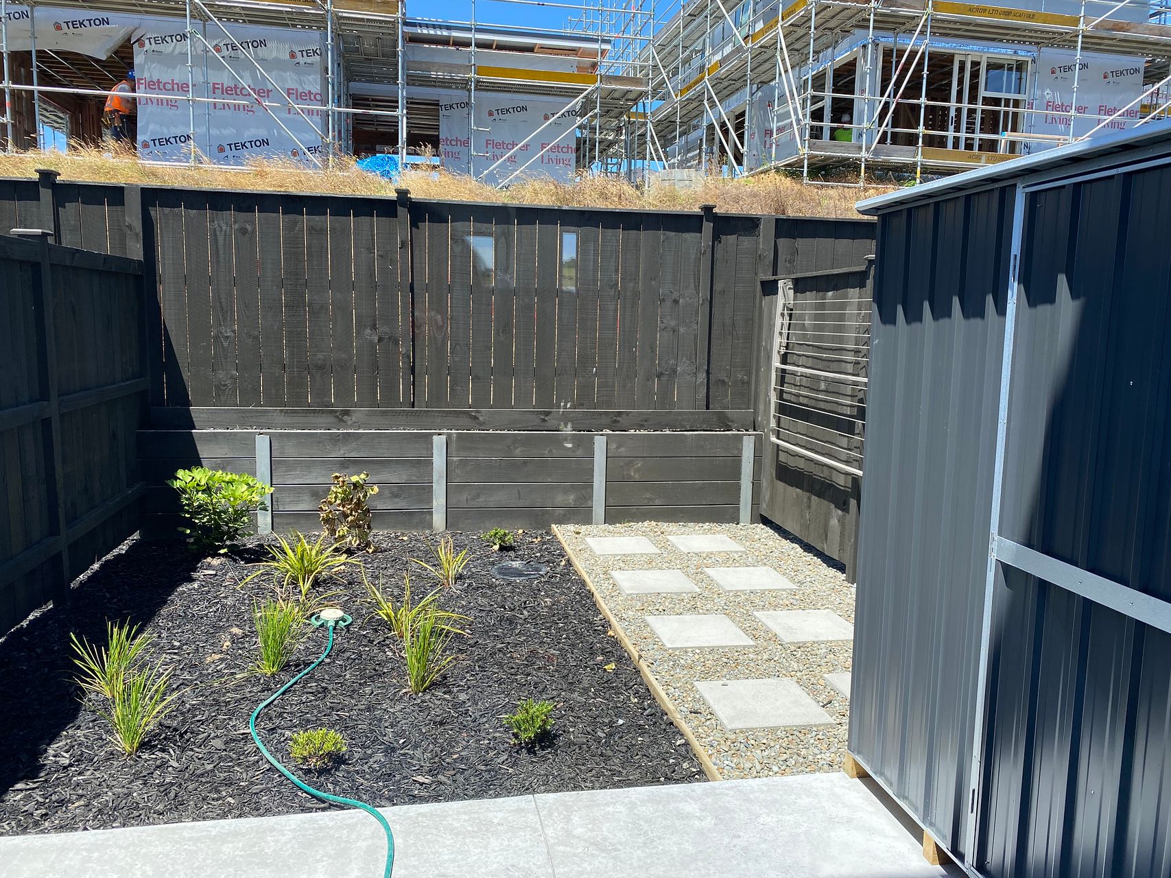 Backyard with a garden shed,
