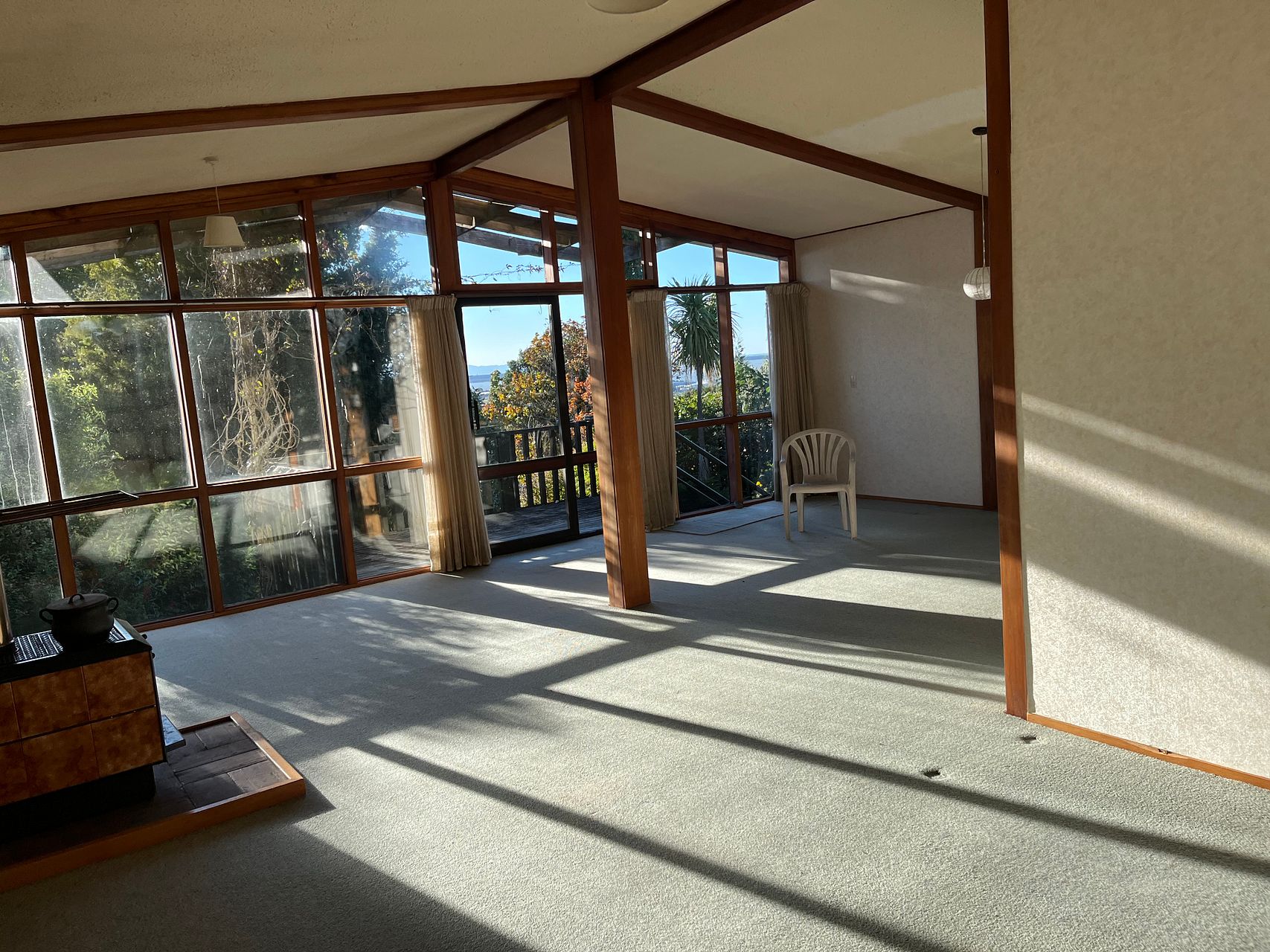 It is in original 70’s decor with a new wood burner.