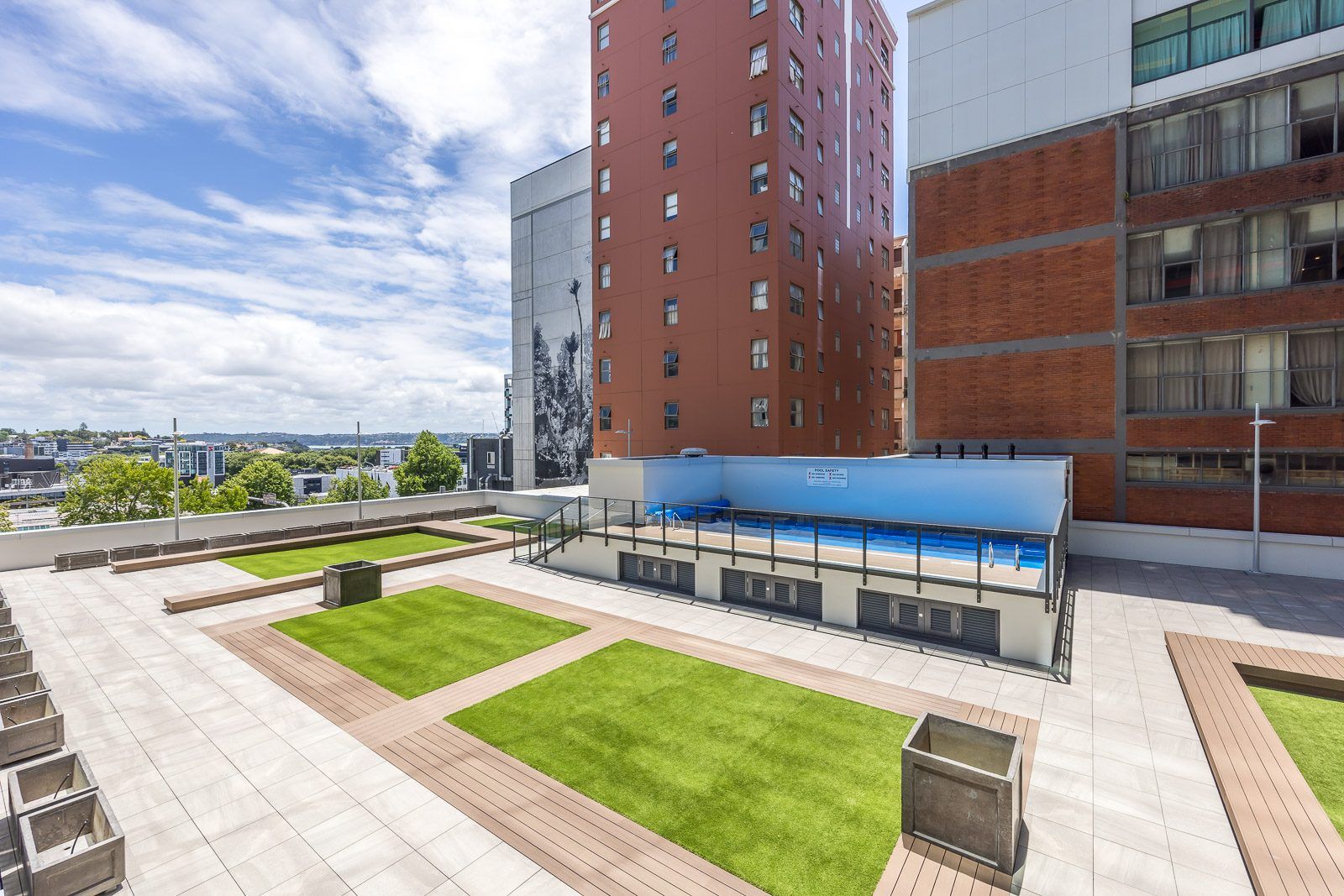 The complex includes use of the onsite gym as well as outdoor swimming pool.