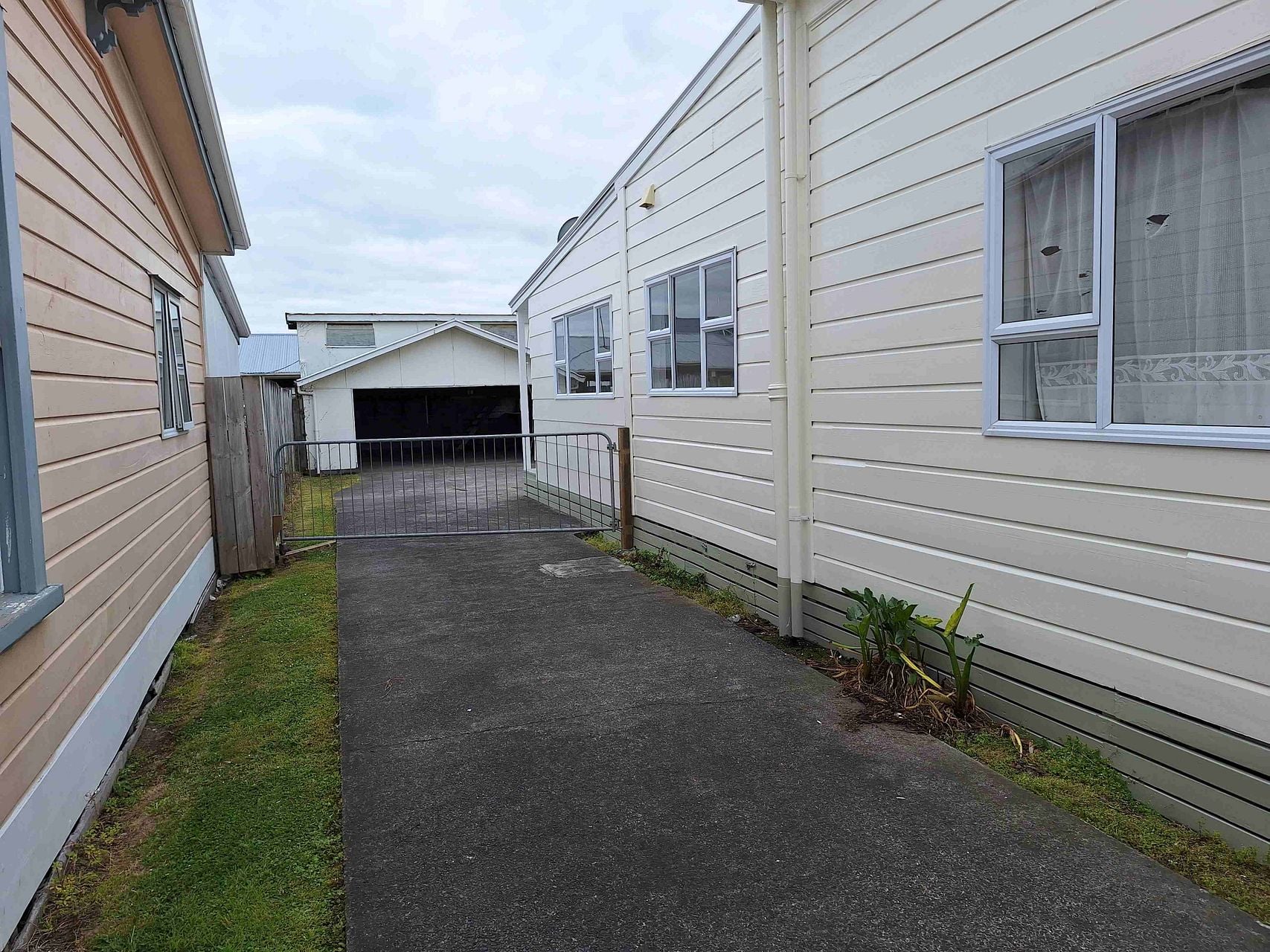 The living area/lounge extends onto a back verandah and overlooks a fully-fenced lawn. Security lighting at the back of the house adds to the sense of ease and safety. The generous parking area accommodates up to 5 vehicles, making this an ideal home for those with multiple cars or who enjoy hosting guests. There is a large double garage at the back of the premises (without doors).