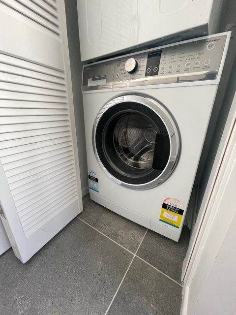 You'll enjoy the added convenience of having a bus stop and a playground directly across the road, as well as a lovely bush outlook for a peaceful setting. The unit also comes with top-brand appliances, including a Fisher & Paykel washing machine, dryer, 2-drawer dishwasher, oven/stove, and heat pump. Both bedrooms are compact with built-in wardrobes, offering efficient space.
