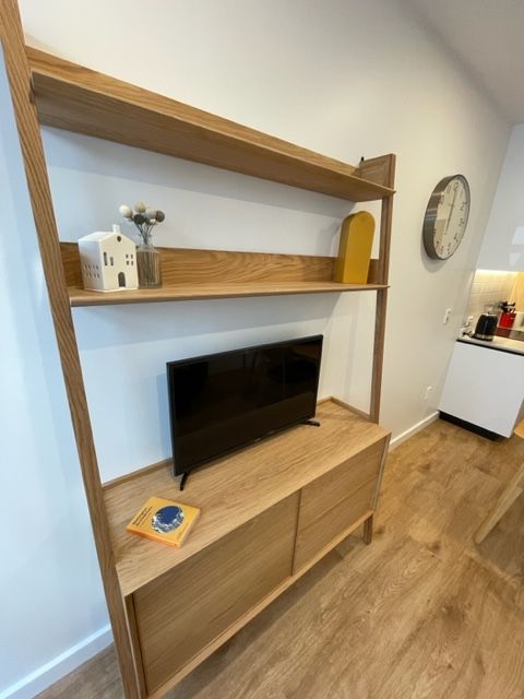 Open plan, compact living/dining/kitchen (with microwave and fridge/freezer)