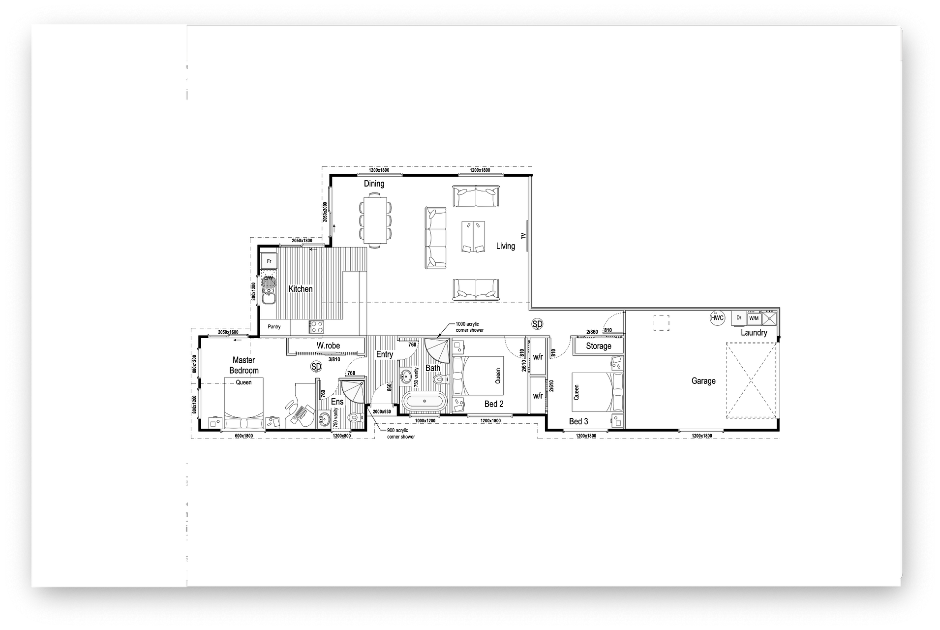3 bedrooms, 2 bathrooms. Large living room and kitchen. Single garage with laundry, 1 extra off street car park next to the garage.