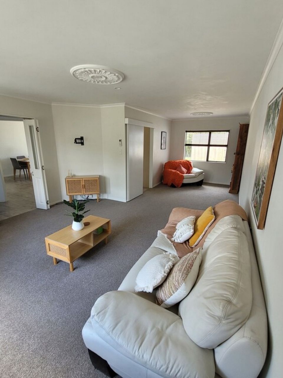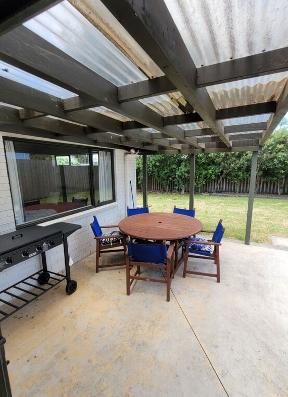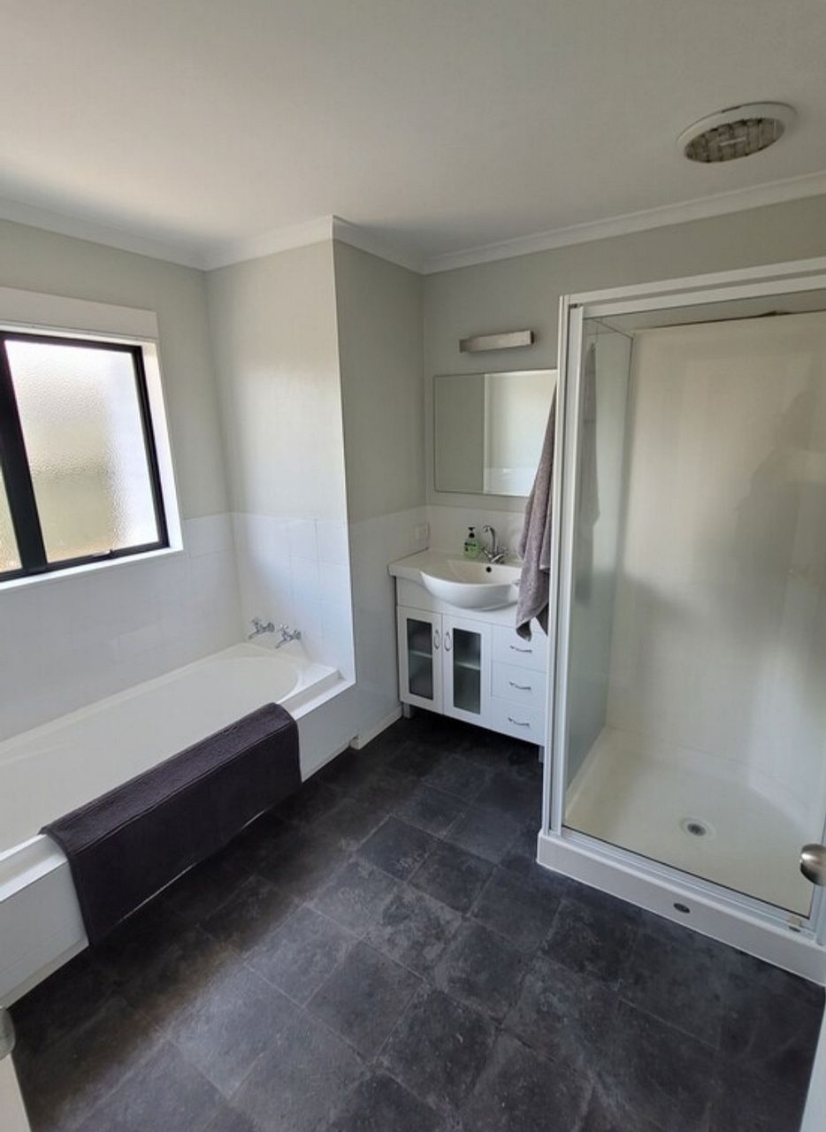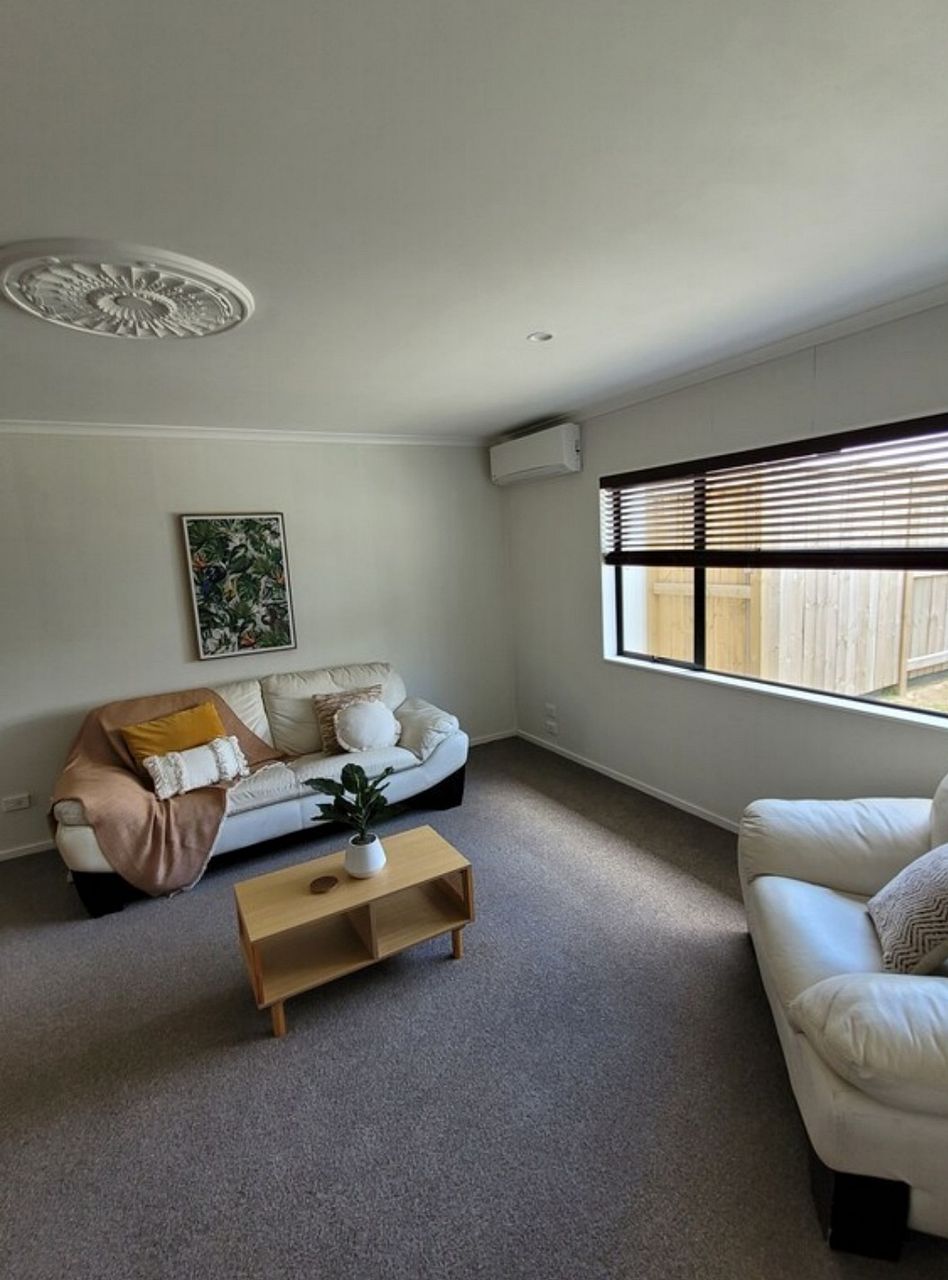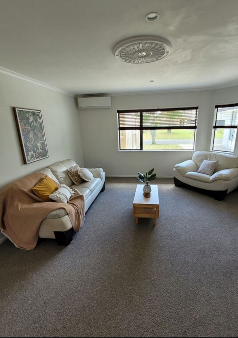 This house has a spacious kitchen/dining area that looks out onto a good sized, low mantainance garden with covered patio area. It provides a large cosy living area with a new heatpump that could easily accomadate space for an office too. The house also includes a main bathroom and separate toilet, a laundry room and a double garage.