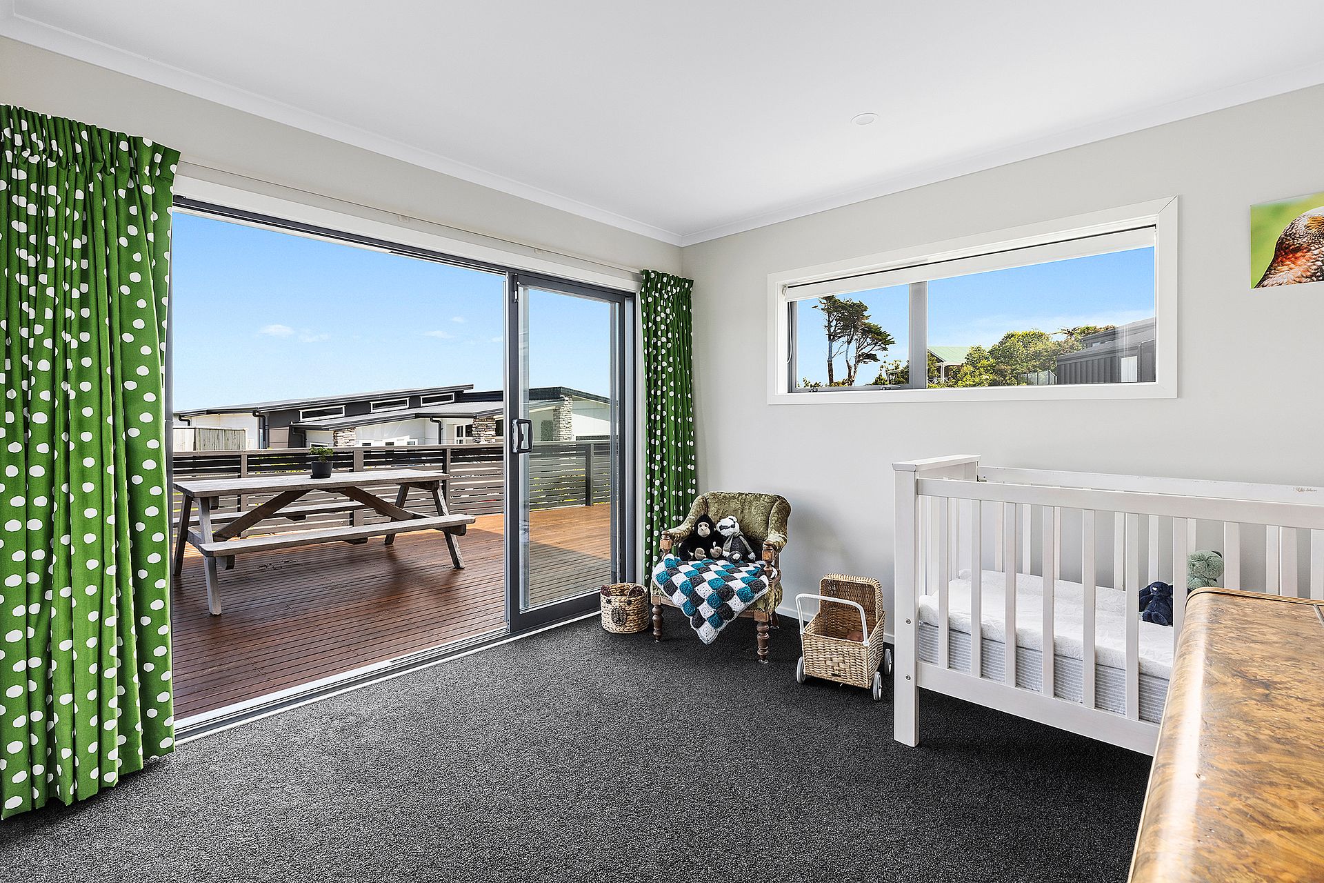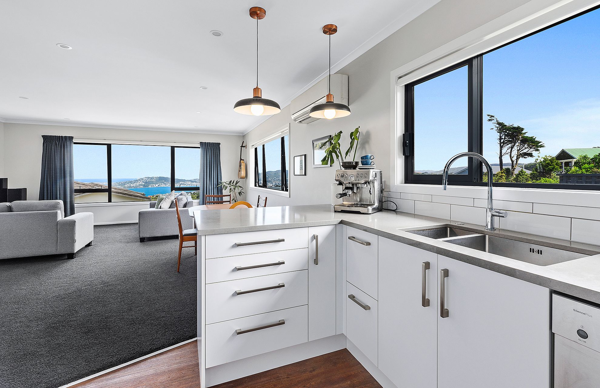 - Open-plan living and dining room with similarly panoramic views and the big bonus of huge storage space for kids' toys and everything else you want to bundle away quickly out of sight