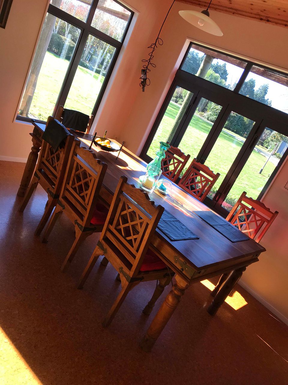Architecturally designed home on one acre of ornamental gardens. We will leave a good supply of firewood for the wood burner to keep you toasty and warm all winter. Gas hot water and hob. Our house is well insulated with double glazing throughout, the interior has been repainted, mostly carpet and cork floors in kitchen and dining area, large open plan kitchen and dining with separate lounge. There is also a cosy covered outdoor area with open fireplace for entertaining.