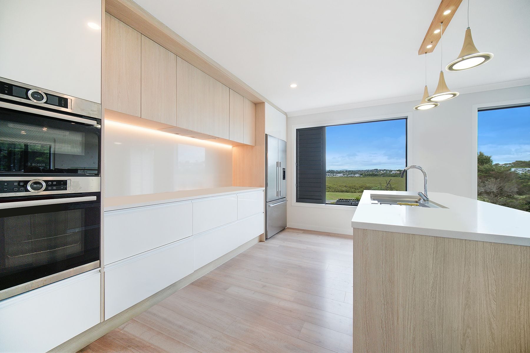 This high-quality home features 360m² of floor area on a generous 1003m² freehold section, offering exceptional space and privacy. Designed for comfort and sophistication, it includes multiple living areas, high-stud ceilings, a designer staircase, and expansive windows that flood the home with natural light while showcasing the beautiful coastal outlook.