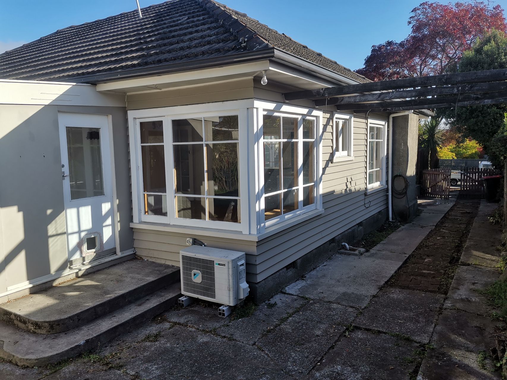 This home features four bedrooms, two of which are larger than usual. The lounge is sunny and opens onto a concrete patio thru French doors, and also has a heatpump.