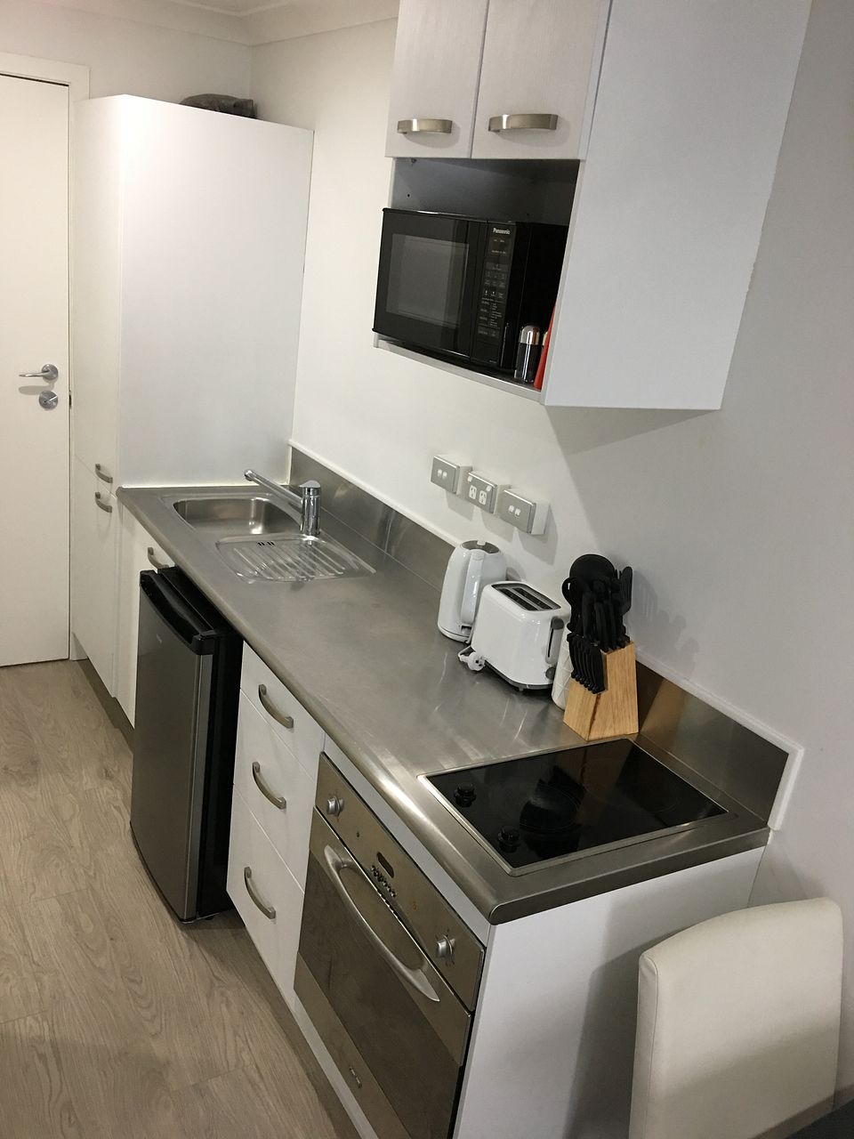 The modern kitchen comes with fridge, microwave (new), oven, hob, toaster, kettle and all kitchenware
