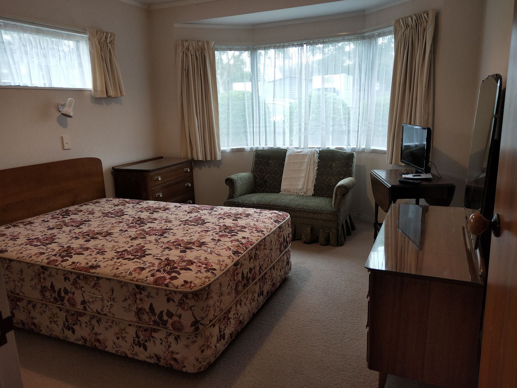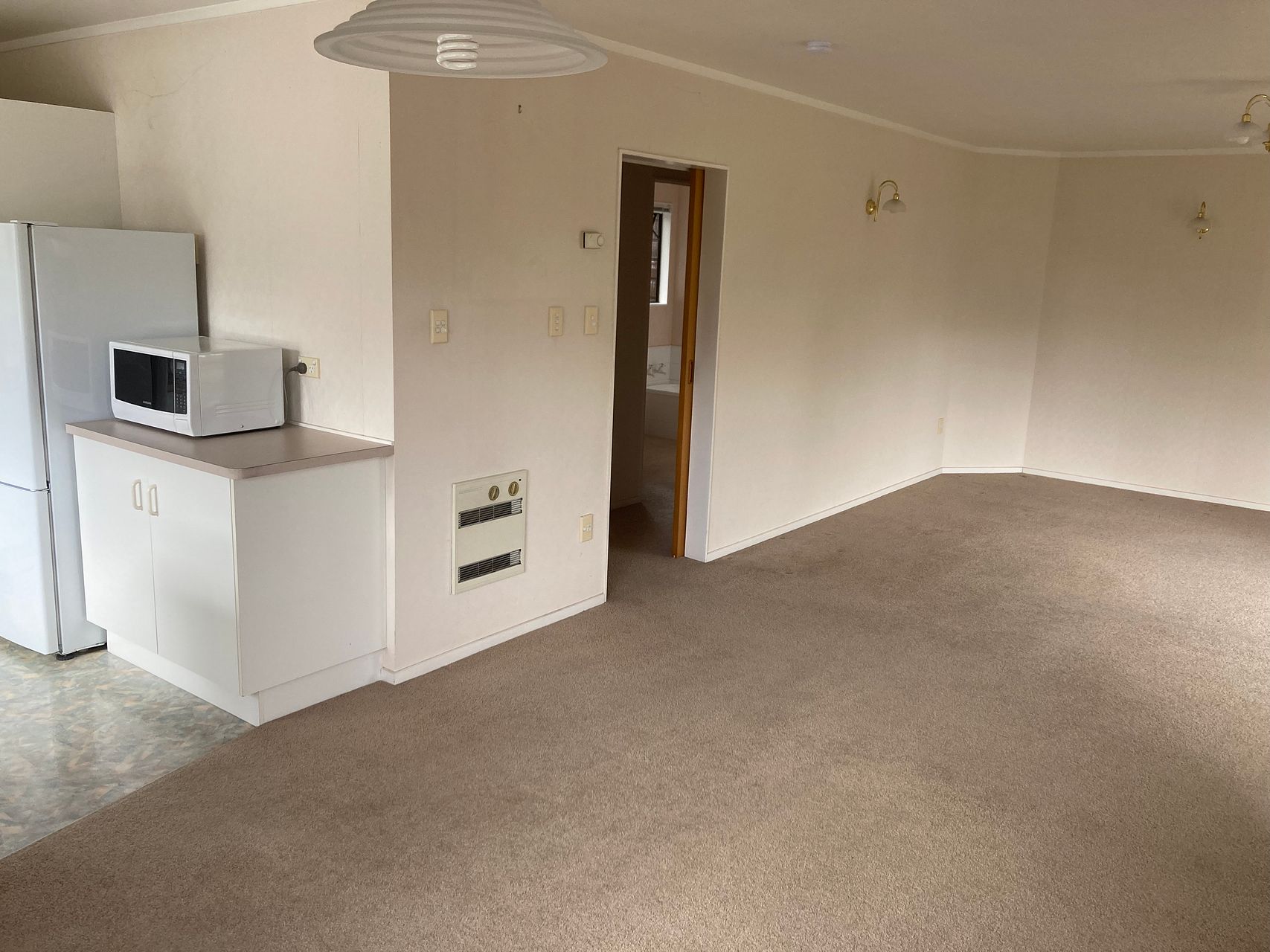 Comes partially furnished with fridge, microwave, washing machine and dryer. There is an inbuilt electric heater too.